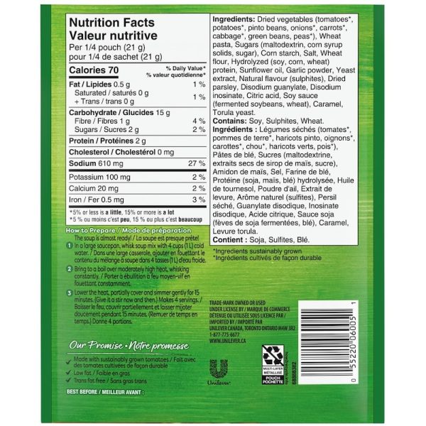 - Enjoy without worry – this Knorr Minestrone Soup Mix has no artificial flavours and is low-fat, trans-fat free