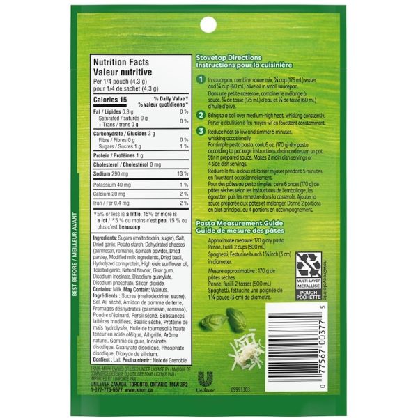 - Knorr Sauce Mix Pesto is a classic sauce that’s perfect for pasta, meats and fish.