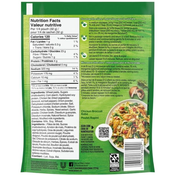 - Knorr Sidekicks Chicken & Broccoli Pasta Side contains no artificial flavours or colours