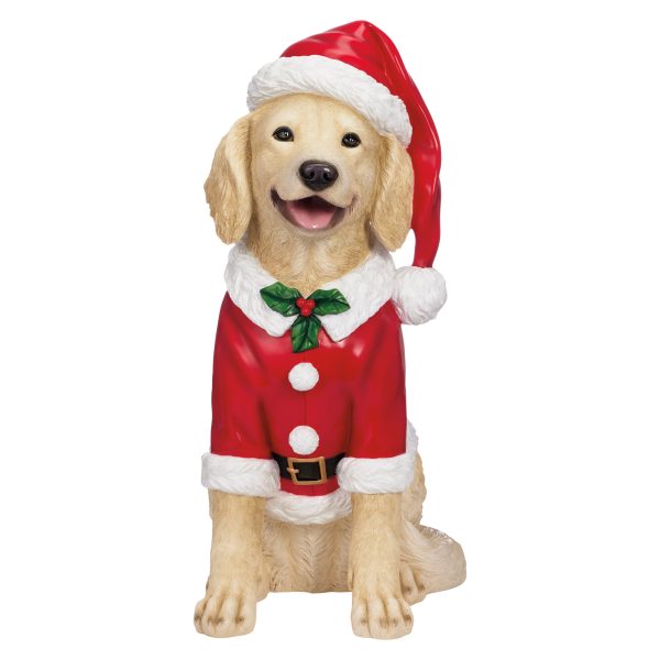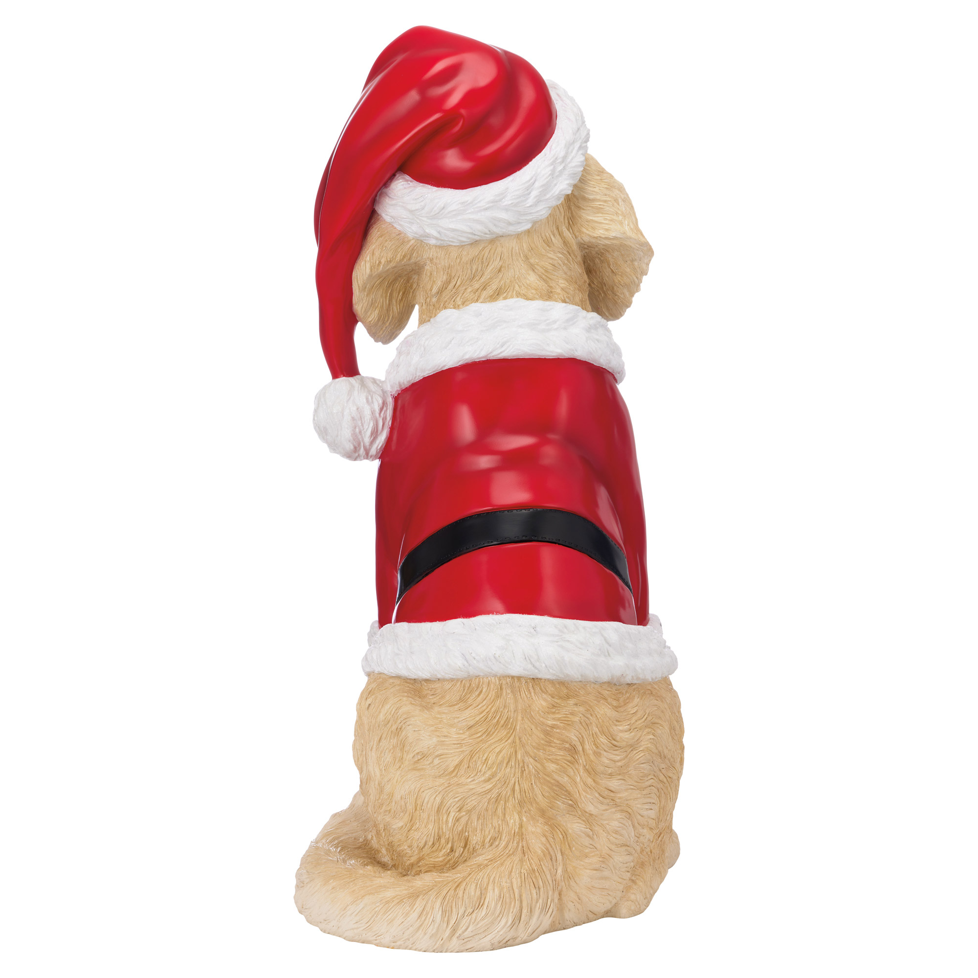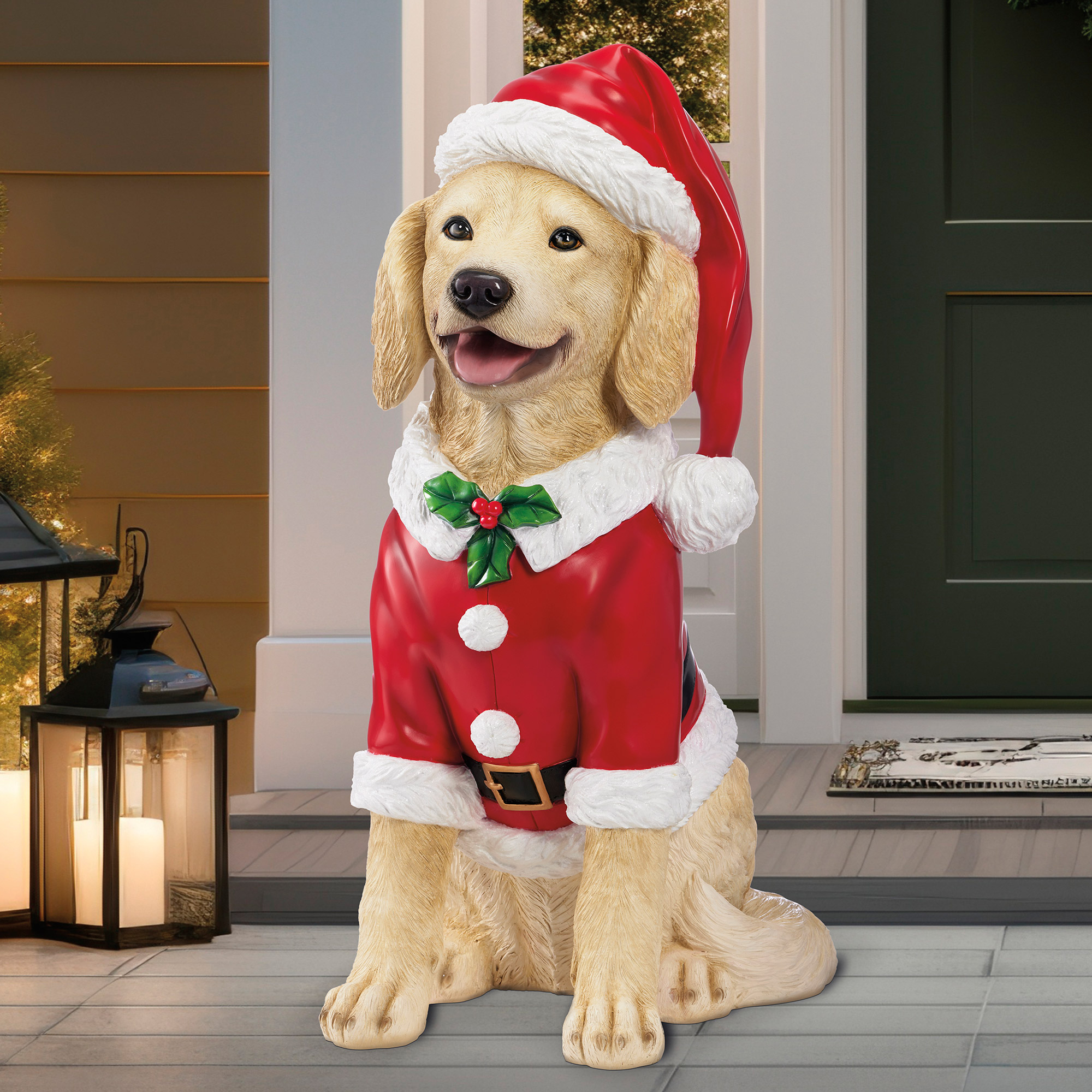 Celebrate the season with this resin holiday dog greeter, the perfect way to welcome guests with warmth and charm! This adorable pup, dressed in festive holiday cheer brings joy to any doorstep, entryway, or fireplace mantel.