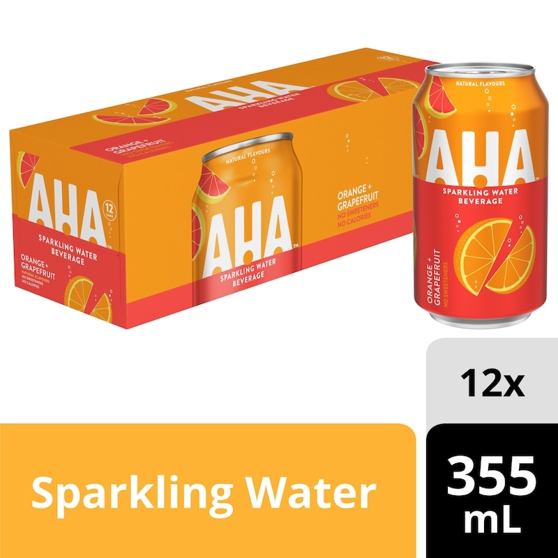 AHA! You’ve discovered the new taste of sparkling water beverages—but not just any sparkling water beverage. You’ve found a delightful duo of flavours—a unique and renewing combination of orange and grapefruit that’s sure to delight your taste buds. Because when it comes to flavour, we didn’t stop at just one.For a renewed sense of hydration, try the flavour-forward combination of AHA Orange + Grapefruit. Whether you call it seltzer, carbonated water, or a fizzy beverage, AHA’s bold flavour pairings offer a unique flavoured sparkling-water beverage experience unlike all the rest—with no sweeteners and no calories.All the flavour, all the sparkle—AHA is two big flavours in one delightful drink. With one sip, AHA’s flavours will refresh, renew, and awaken your taste buds. Discover the awakening taste of AHA Orange + Grapefruit.