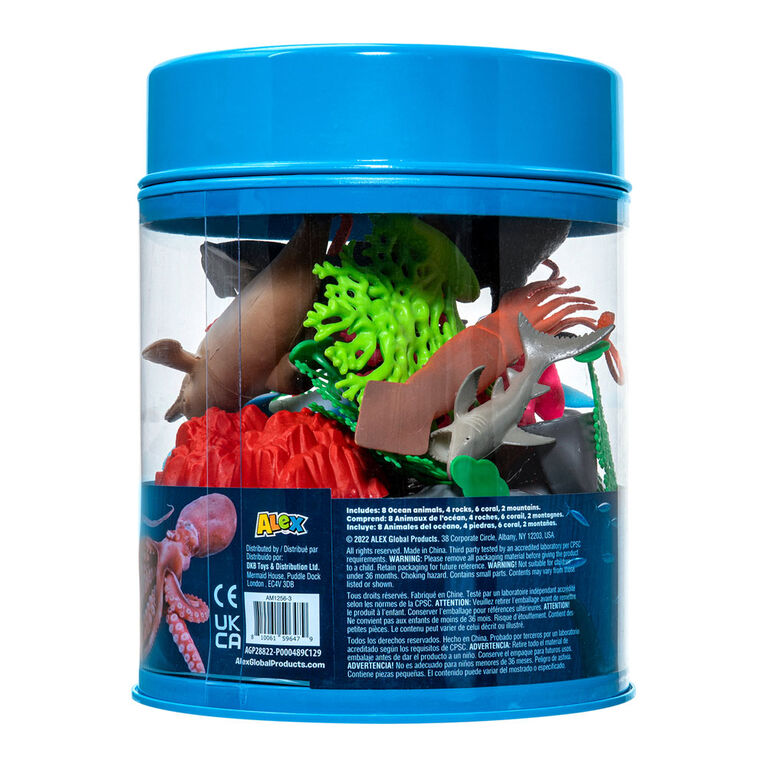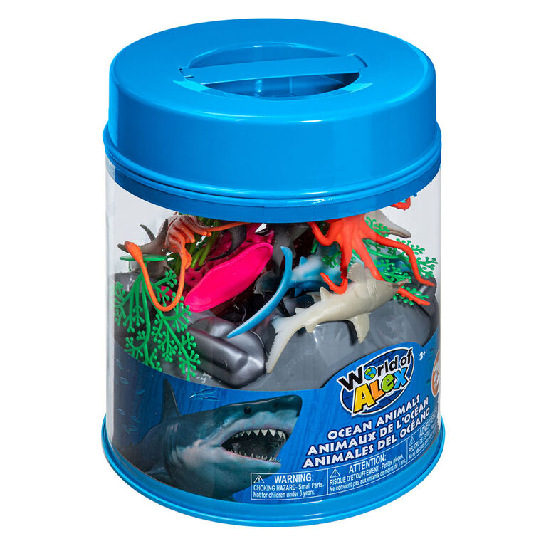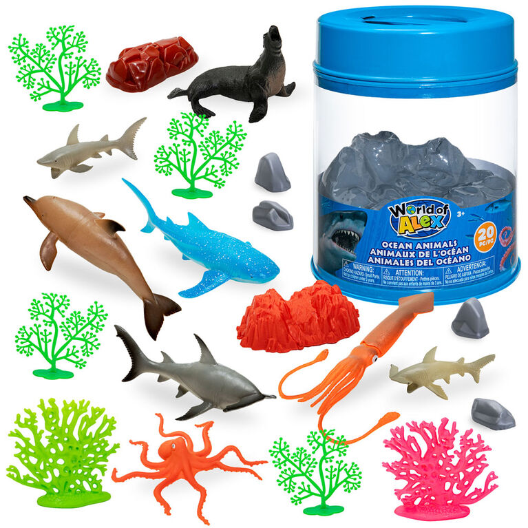 Unique, only available at our store. Dive into the ocean with this 20 Piece Ocean Bucket from World of Alex. An assortment of ocean creatures and plants to let your child imagine they are on an underwater ocean excursion.