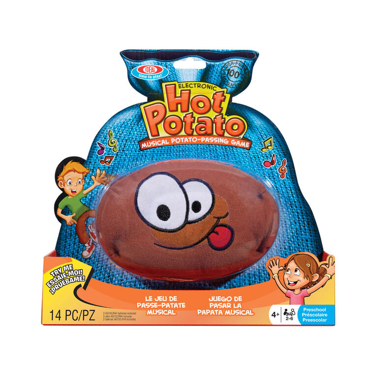 Ideal Hot Potato Musical Potato-Passing Game is a wild, frantic, laugh out loud, electronic tater-tossing good time! Designed for 2-6 players, this musical game can be played by the whole family. Just squeeze the Hot Potato to start the music and let the fun begin. Pass the spud to the player next to you or even across the room. Toss the tater back and forth, up high, down low, around and around, but don’t get caught holding the spud when the music stops! If you do, you have to take a potato chip card. Get 3 chip cards and you’re out. The last player remaining without 3 chip cards is the winner! Includes an electronic plush potato stuffed with foam, 13 potato chip cards, 3 AG13/LR44 batteries and instructions.