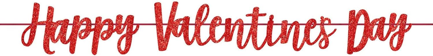 Amscan Happy Valentines Day Glitter Letter Banner, Party Decorations, 12′ X 6 1/2″, Red