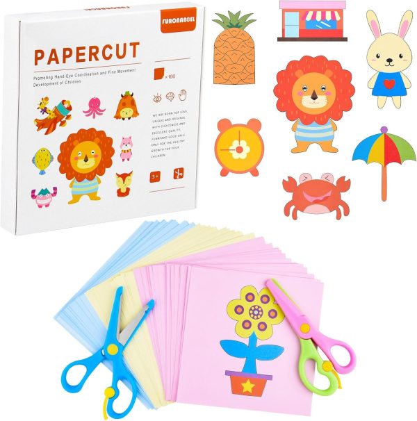– Package Includes:2 pairs of scissors of different materials, 100 pieces of colourful paper cuttings