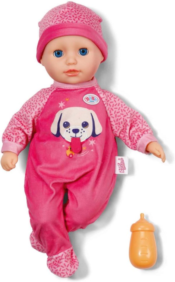 Say hello to BABY Born Anna (Pink, 36 cm)—the perfect first doll for toddlers from 12 months and up. With her softly stuffed body, Anna is ideal for hugs, playtime, and bedtime comfort. When laid on her back, Anna’s sleeping eyes close softly, giving children the joy of caring for a doll just like a real baby. She comes with her own bottle to encourage imaginative feeding and role-play, helping little ones practice nurturing skills. Anna is dressed in a pink romper decorated with a playful dog print and a matching hat for a sweet, cheerful look. All outfits and accessories from the BABY Born 36 cm range fit perfectly, making play even more fun. Soft, safe, and easy to carry, BABY Born Anna is the perfect cuddle companion for every little adventure, nap, and bedtime snuggle.