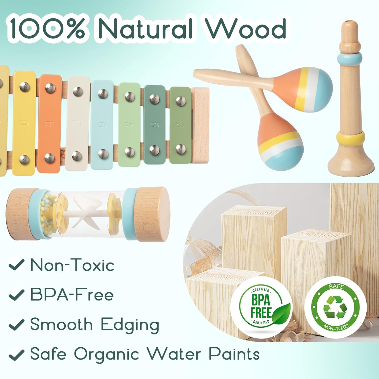 - Safe and Durable:Our montessori musical instruments are 100% BPA-free and have passed CPC/ASTM safety standards, ensuring that your little ones can explore their musical talents with safe, non-toxic materials!Crafted from 100% natural wood and finished with safe organic water paints, our instruments feature smooth edges and are designed for little hands, making them durable and delightfully tactile for endless fun.