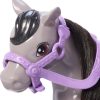 Chelsea and her sweet pony are ready to ride into playtime! Strap on Chelsea doll’s pink helmet and sit her on the pretty pink saddle. Help her hold the reins then giddy up! Chelsea doll’s knees bend and feet loop in the stirrups for a realistic ride on her toy horse. The little gray pony has a soft mane and tail for petting fun. Kids can let their imaginations run wild with Chelsea and her horse! Doll cannot stand alone. Colors and decorations may vary.