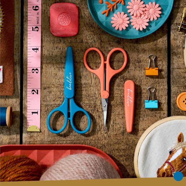 - Multipurpose Detail Scissors Set – The set includes two scissors (one blue, one orange) ideal for paper cutting, scrapbooking, and fine detail work in general.