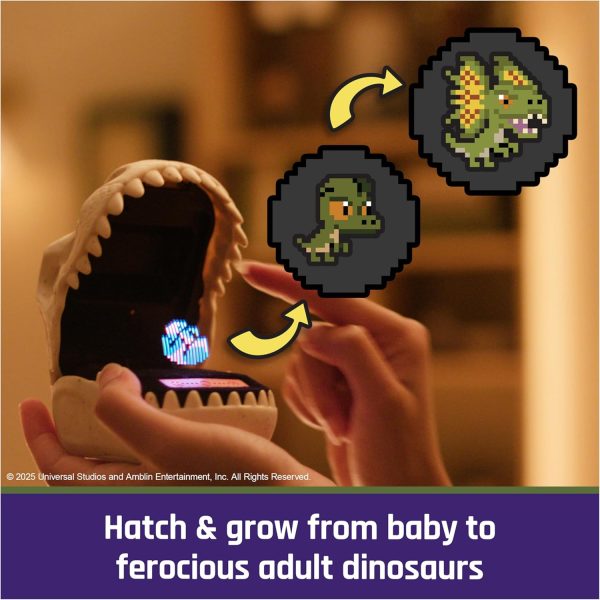Experience colossal fun with Bitzee Jurassic World. Like Bitzee digital pets, these dinosaurs respond to touch, tilts and shakes with sounds and reactions. Inside the fossil-shaped dinosaur pod, go on expeditions, dig for fossils and hatch dinosaurs from eggs. Each dinosaur starts as a baby and needs your care to grow into an adult. Increase your dinosaur’s strength playing games, so they can win battles solo or against a friend. Win an amber to customize dinosaurs with rare colors. For the first time, wirelessly connect 2 Bitzee Jurassic World toys to battle friends or trade dinosaurs. Unlock all 25 species. Kids who enjoy animation, kids’ electronics, surprise toys, animal toys, fidget toys and STEM toys will love Bitzee toys for boys and girls. Even adults will be mesmerized with Bitzee’s screen-free innovative twist on 90s toys & games from their childhood. Includes 3 AA batteries. Warning: produces flashes that may trigger epilepsy in sensitised individuals. Bitzee interactive pet toys for kids are must-have birthday gifts, holiday gifts or gifts for girls and boys for any occasion. A welcome addition to any dinosaur toys collection. Bring home a world of dinosaurs in the palm of your hand with Bitzee Jurassic World.