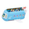 Bluey's 3-in-1 Transforming Plane Mega Playset easily transforms from a plane into a resort and a boat! Open up the body of the plane to reveal a huge 27"/ 70cm wide playset with two levels and plenty of areas to explore. The cockpit of the plane even transforms into a boat for more adventures! Includes 12 figures so you can play out the biggest Heeler vacation ever! Pilot Bluey is ready for takeoff, while Bingo, Chilli, and Bandit are all dressed for fun in the sun with their sunnies. With Grandpa Bob, Nana, Uncle Stripe, Trixie, Muffin, Socks, Uncle Rad, and Frisky all on board, the whole family is in for an unforgettable trip! The playset comes to life with 30 play pieces and over 25 sounds and phrases from the show.