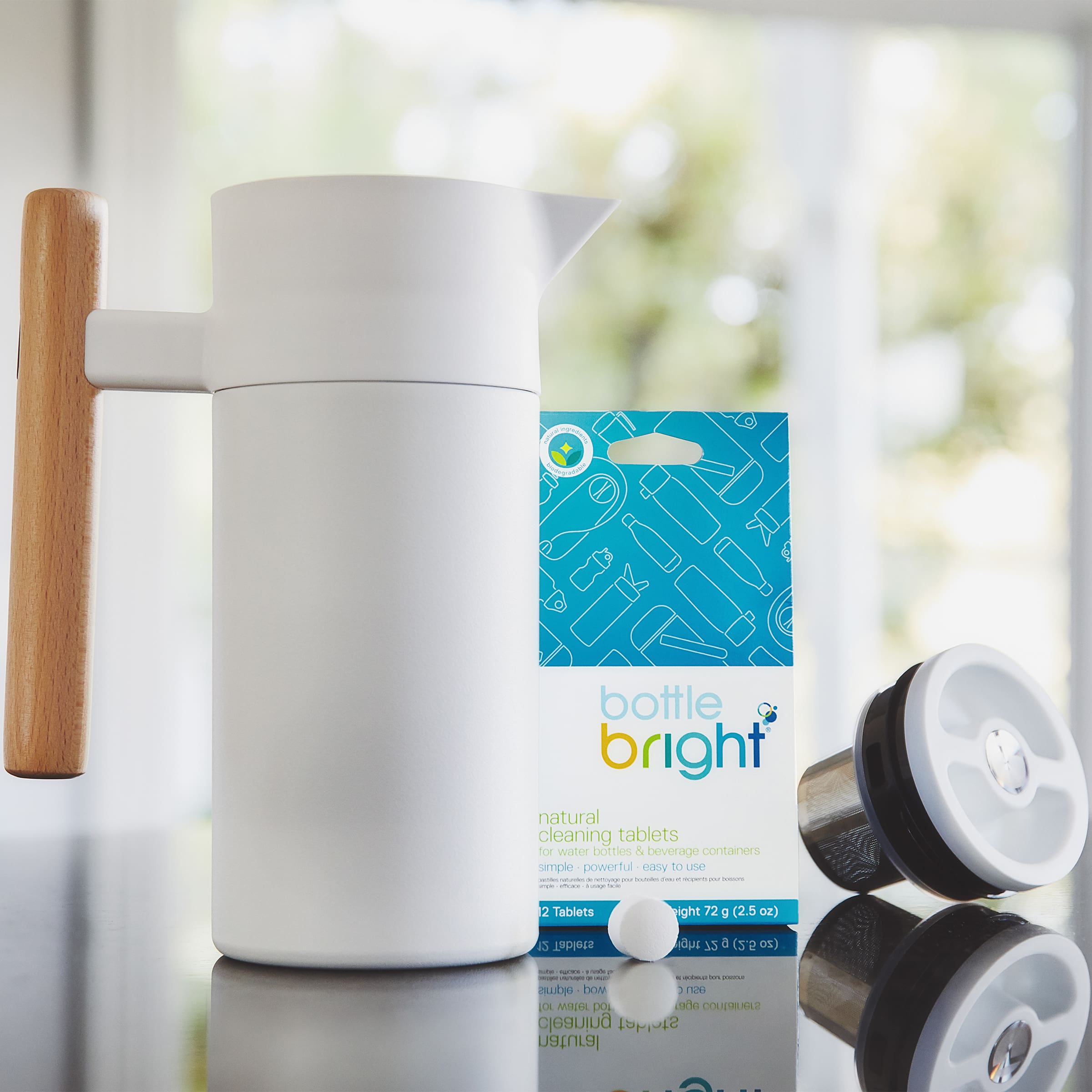 Bottle Bright is the natural, biodegradable, grime-fighting cleaning tablet that takes your toughest-to-clean bottles to task. Easy-to-use and ultra-efficient, Bottle Bright tablets dissolve in water creating tiny, effervescent bubbles that power through stubborn stains and odors, cleaning your favorite bottles and containers in only a matter of minutes with no scrubbing, rubbing or sponging required.