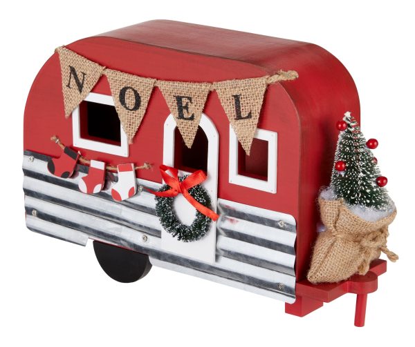 Bring the joy of the great outdoors inside with this festive CANVAS Camper Trailer tabletop decoration. Featuring an artificial tree, wreath and NOEL banner, this Christmas tabletop decoration will add a touch of vintage holiday spirit to any room. The weathered metal and canvas blend evokes memories of family road trips and camping adventures past, while the holiday details make it perfect for spreading Christmas cheer. At only 12 inches tall, it provides the perfect pop of seasonal decoration for your table or mantle without overwhelming smaller spaces. Whether you’re looking to add some rustic charm to your traditional décor or want to infuse a bit of retro nostalgia, this camper trailer is sure to provide a smile each time you see it this holiday season.