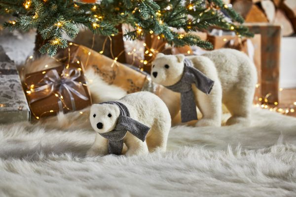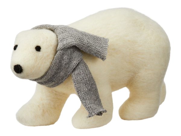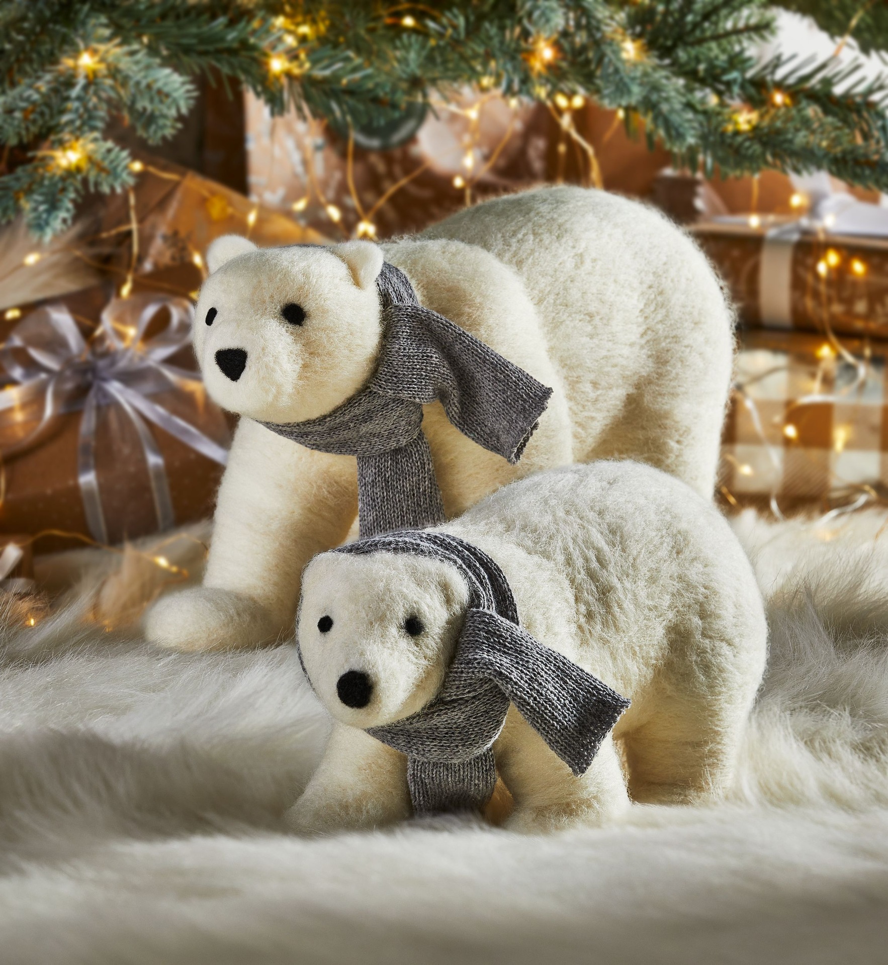 Made from premium felt for a soft yet durable feel, the CANVAS Tabletop Felt Baby Polar Bear with Scarf is handcrafted and unique. With its adorable design featuring a baby polar bear bundled up in a scarf, this accent adds a fun and cute touch to your holiday decoration.