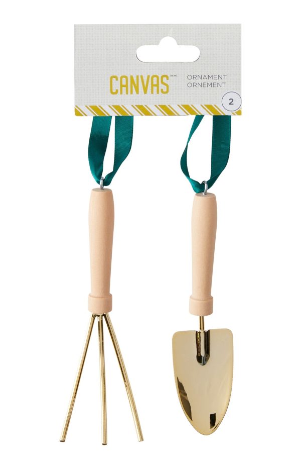 The festive CANVAS Trend Collection Garden Tools Christmas Ornaments Set with 2 Pieces makes a thoughtful gift for the gardener in your life. These durable, shatterproof decorations come ready to hang on the tree or around the house. Depicting a rake and shovel with colourful details, these kid-friendly ornaments are sure to spread holiday cheer. Give the gift of whimsy this holiday season with the original 2-pack of garden tool ornaments from CANVAS.