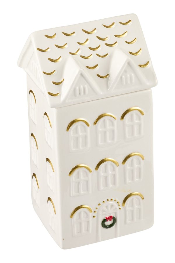 CANVAS Holiday Homecoming Collection Christmas Decoration White Ceramic House with Lid Scented Candle, 6.5-in, 360-g