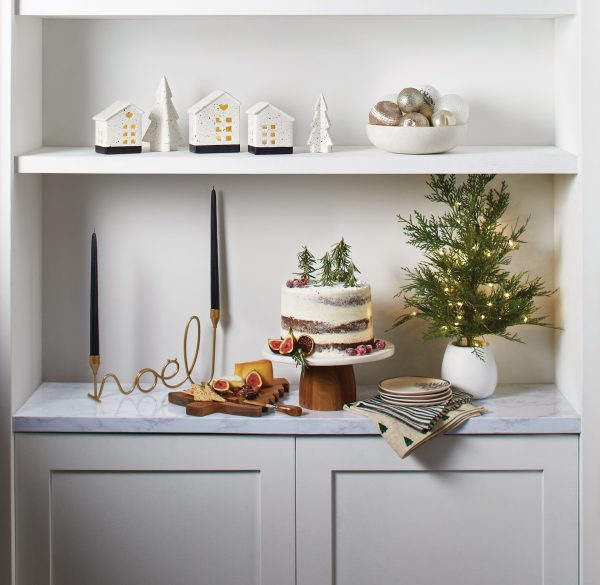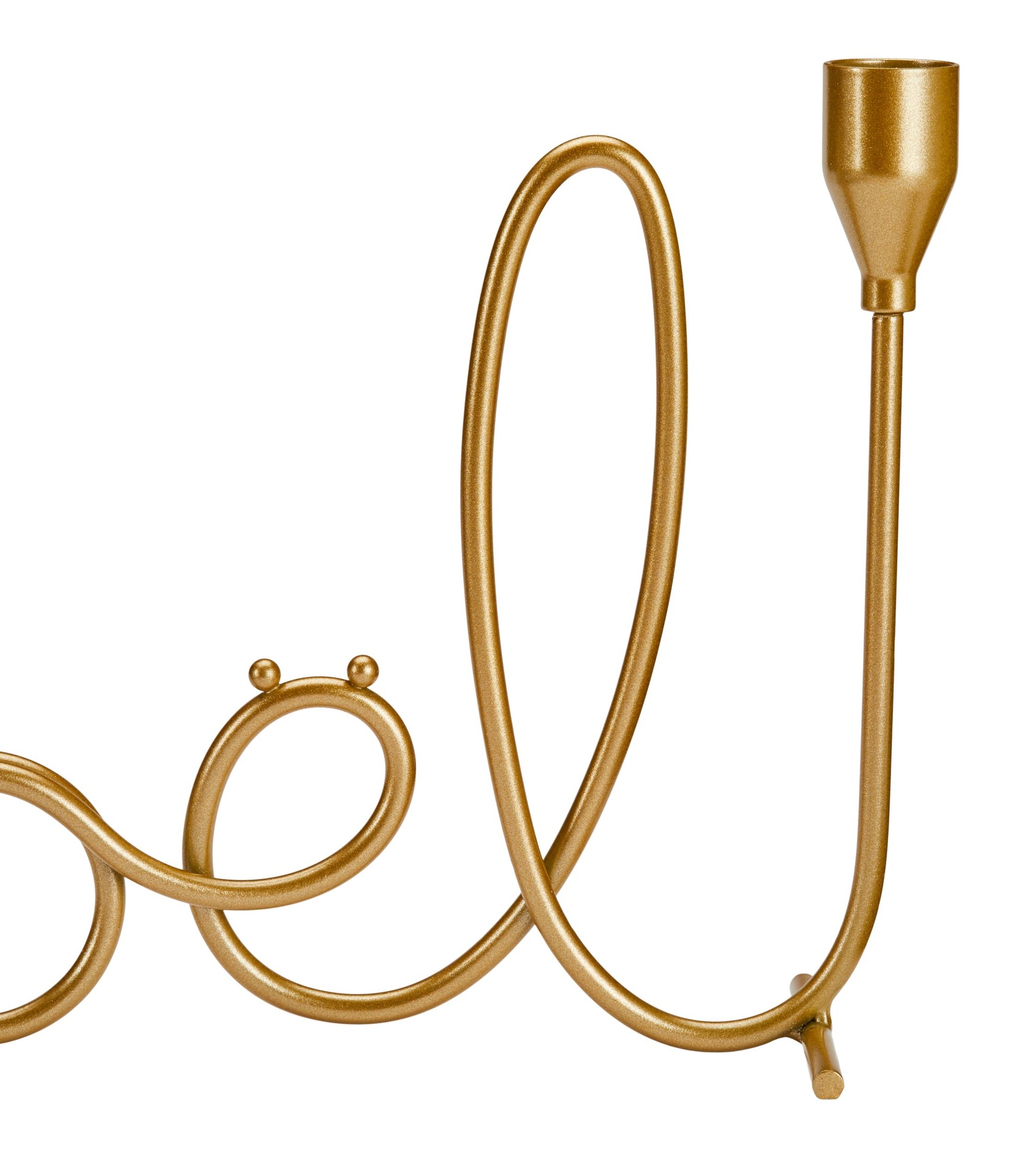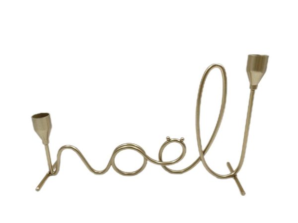 The CANVAS Holiday Homecoming Candle Stick Holder is the perfect way to light up any room with its cursive ‘Noel’ design in gold. Crafted from metal, this holder securely holds two LED or wax taper candles.