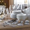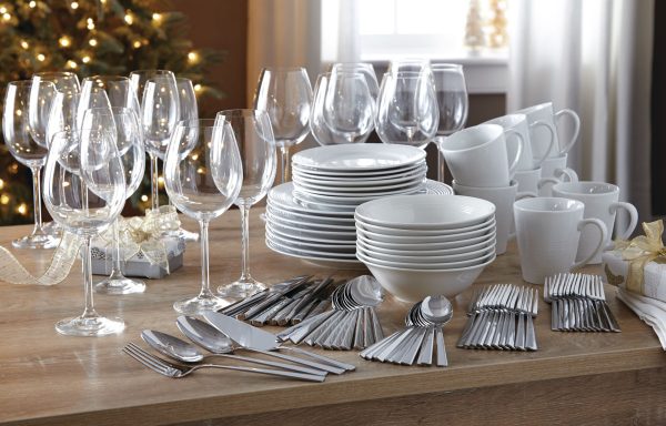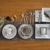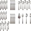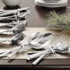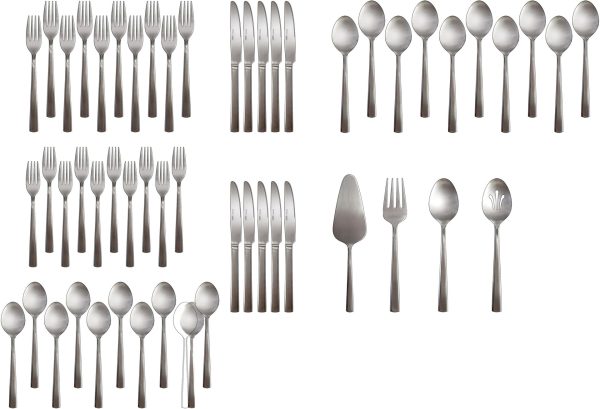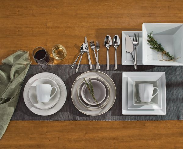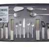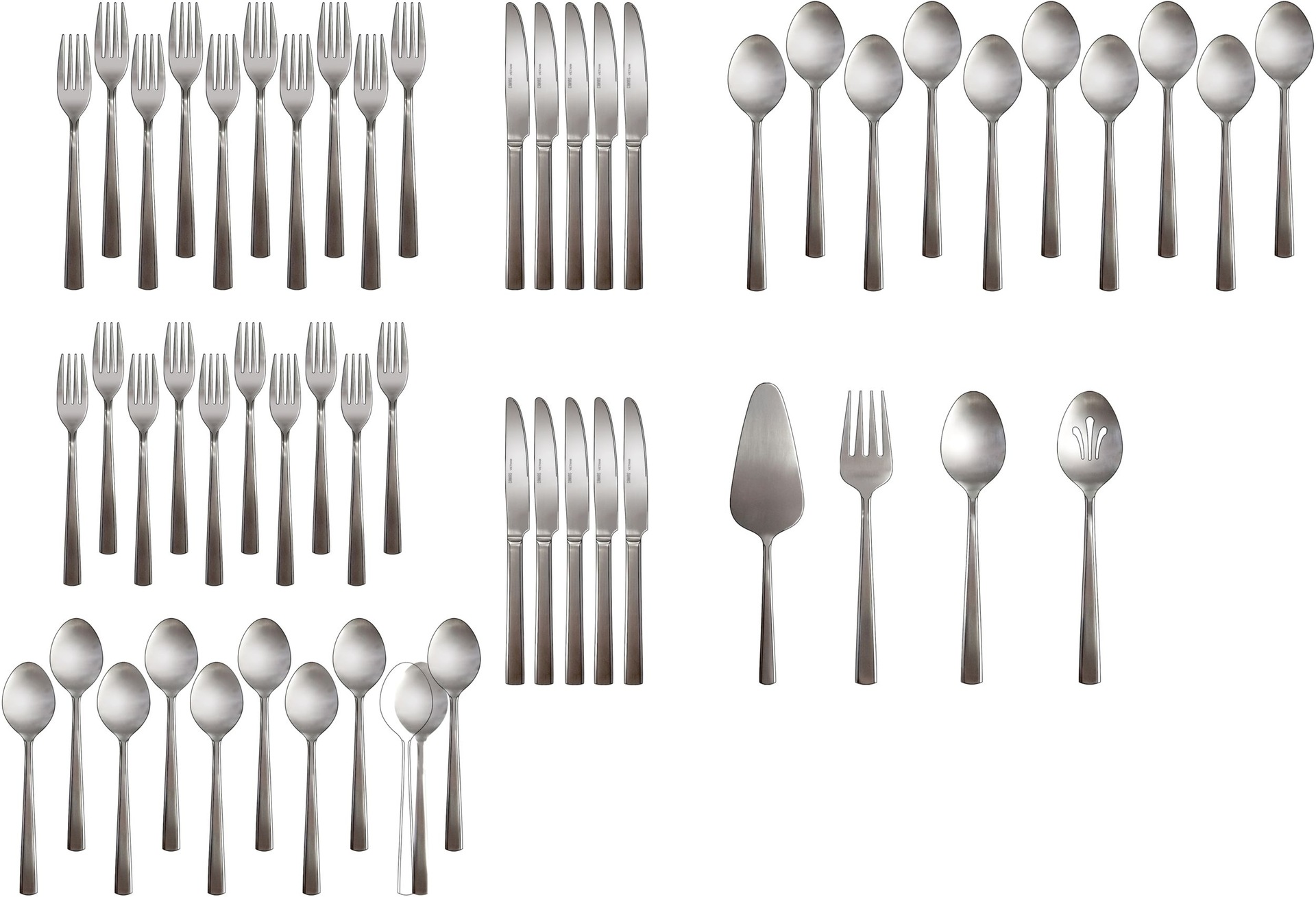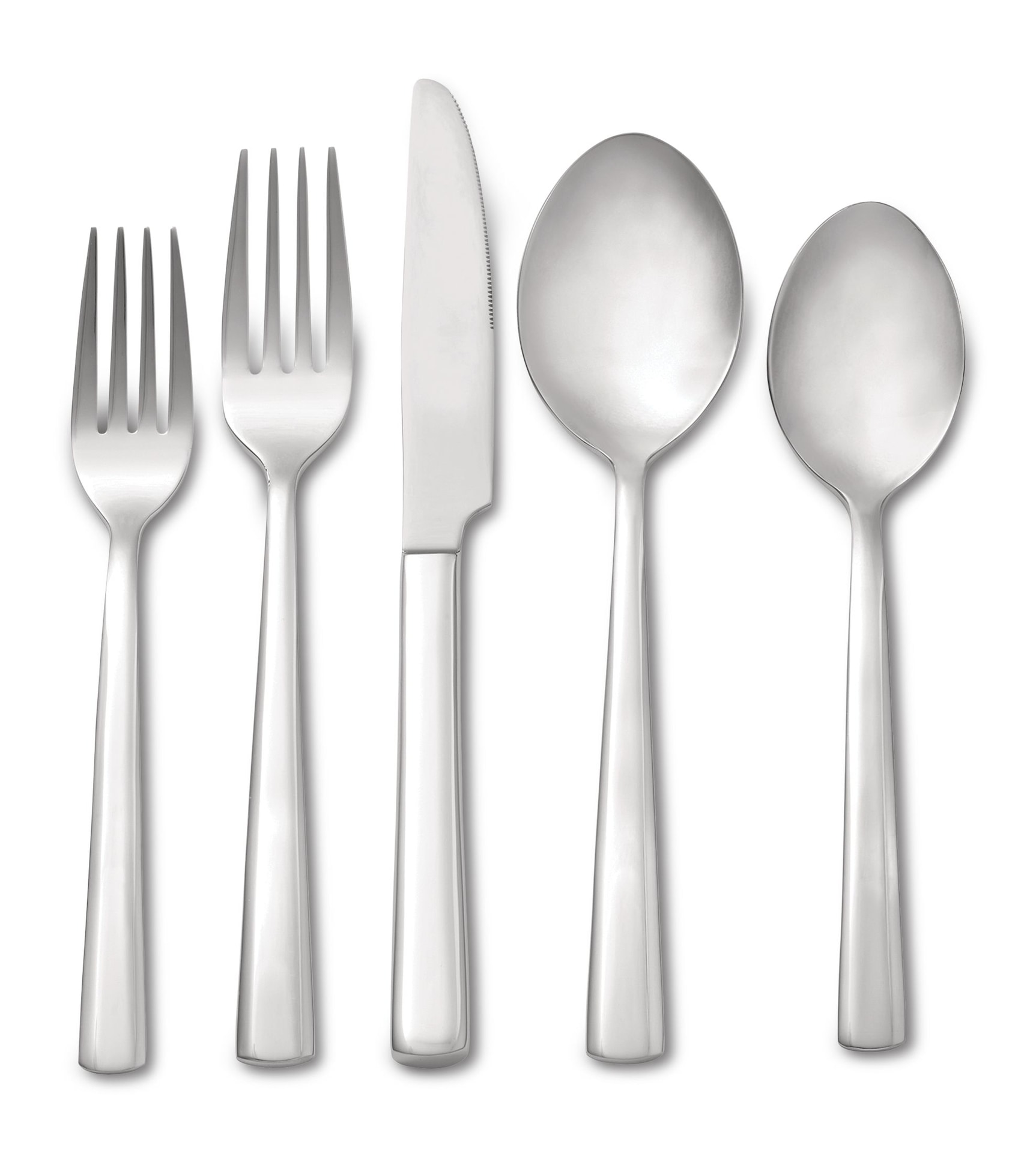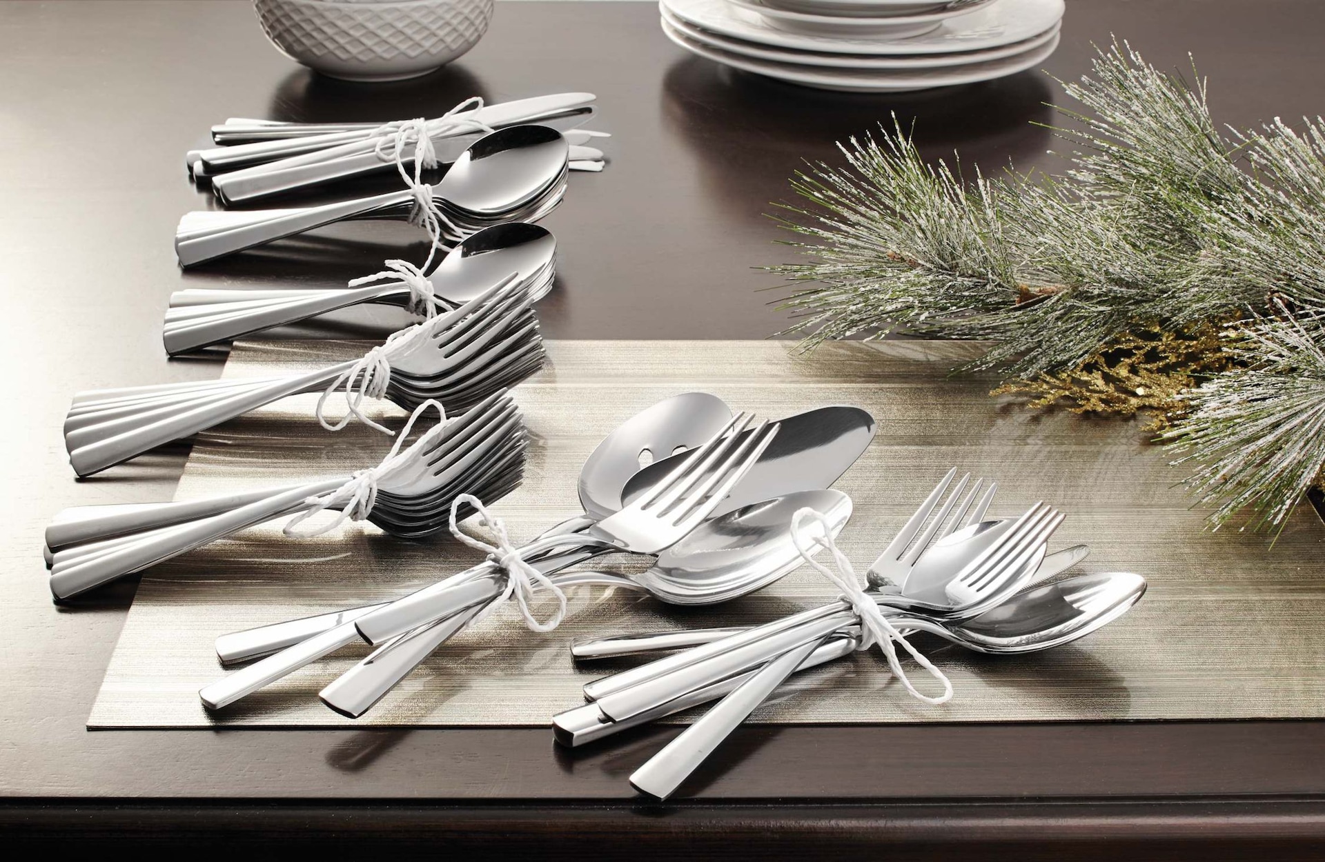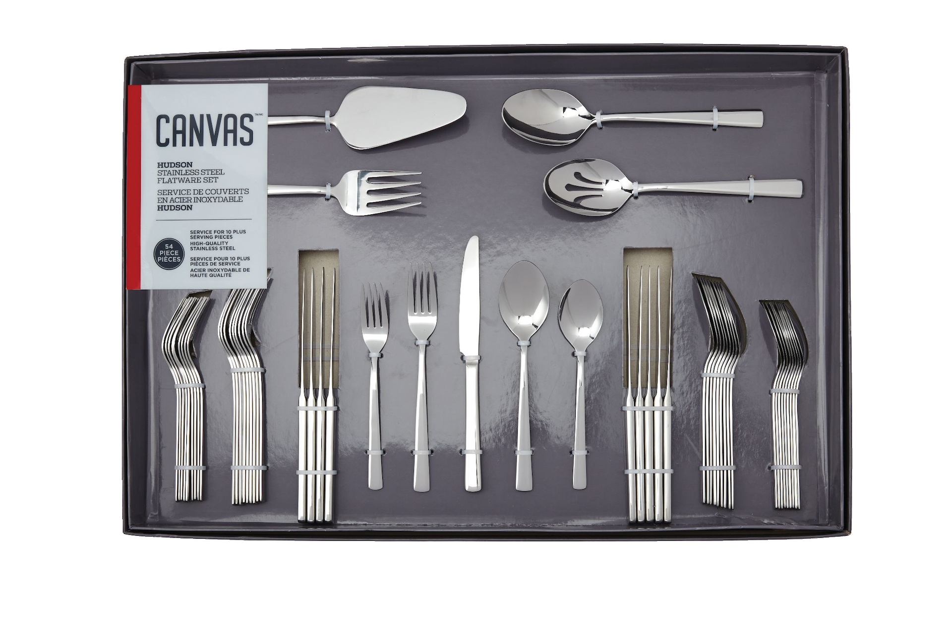 The CANVAS Hudson flatware set is designed for convenience and value in 18/0 stainless steel, with all the pieces you need to seat ten family members or dinner guests for a multi-course meal. Each five-piece setting includes cutlery for a salad course, entree and soup or dessert. This durable, everyday flatware set also includes four serving utensils for dishing everyday and special meals. The flatware features distinctive slender handles and a narrow profile to add a touch of elegance to special occasions.