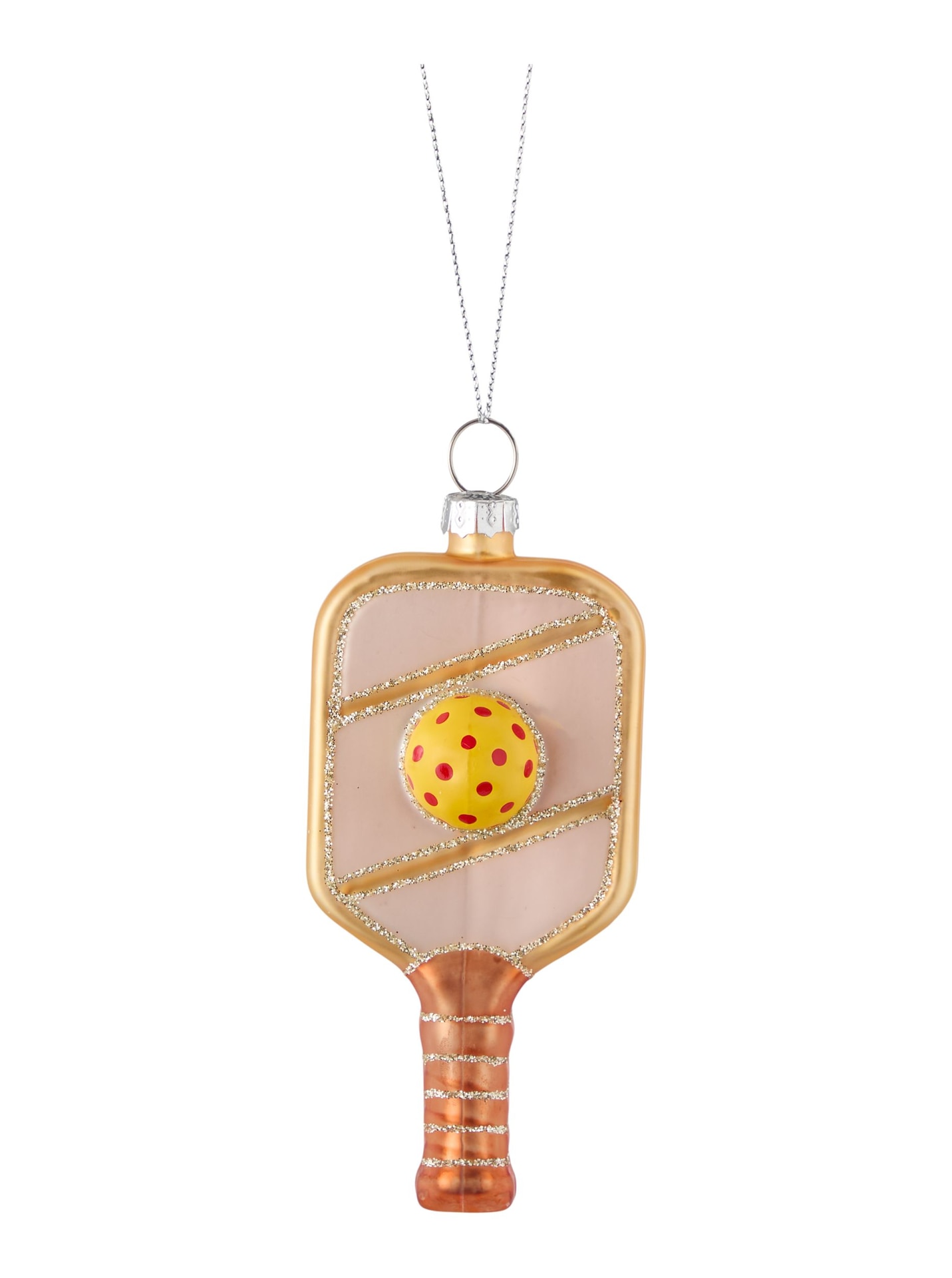 Celebrate the festive season with the CANVAS Merry Mingle Collection Glass Pickleball Paddle and Ball Ornament. This charming decoration adds a whimsical touch to your Christmas tree, making it a delightful addition to your holiday decor or a thoughtful gift for a loved one.