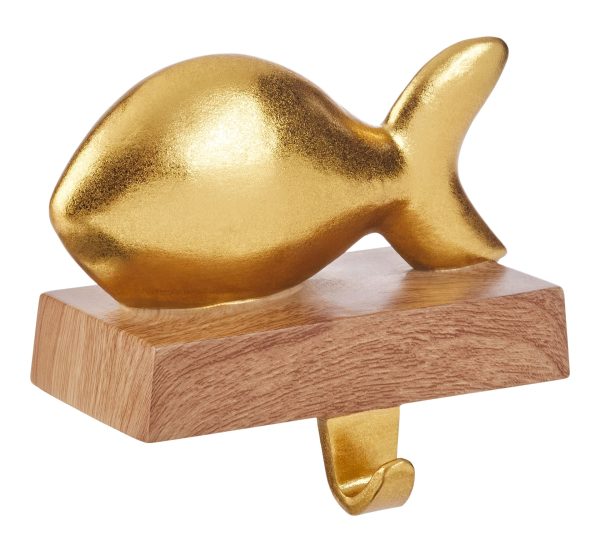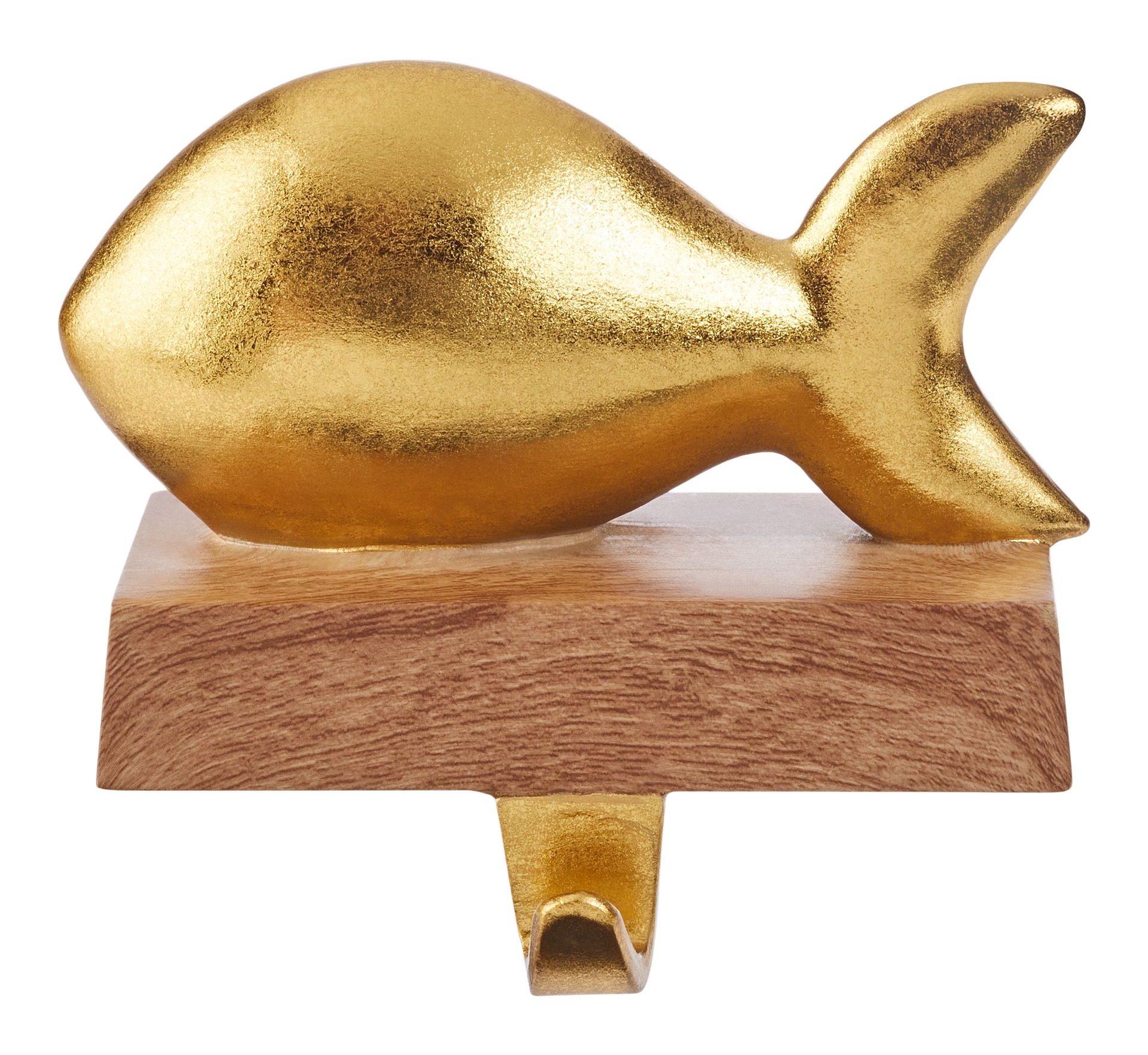Add a touch of whimsy to your holiday decor with the CANVAS Merry Mingle Collection Christmas Decoration Gold Fish Stocking Holder. This charming piece is perfect for pet lovers and brings a playful element to your mantle. Its delightful fish shape and gold finish make it a standout addition to your festive decorations.