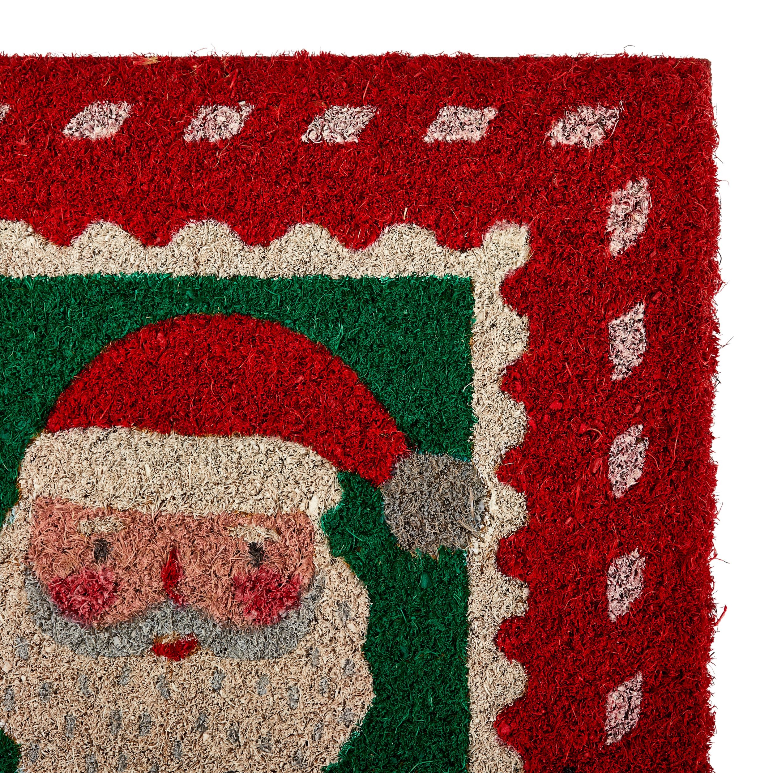The CANVAS Santa’s Workshop Door Mat features a whimsical holiday design made of durable coir fibers. Part of the festive Santa’s Workshop line, this mat’s playful illustration of a mailbox with letters to Santa adds a touch of Christmas cheer to your entryway.