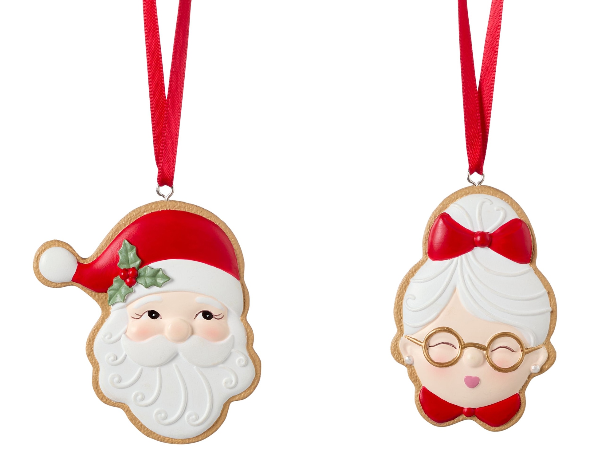 Add a festive touch to your holiday decor with the CANVAS Gingerbread Santa and Mrs Claus Face Ornaments. These charming ornaments are perfect for bringing a whimsical and joyful spirit to your Christmas tree. Crafted with attention to detail, they are ready to hang and will delight both young and old alike.