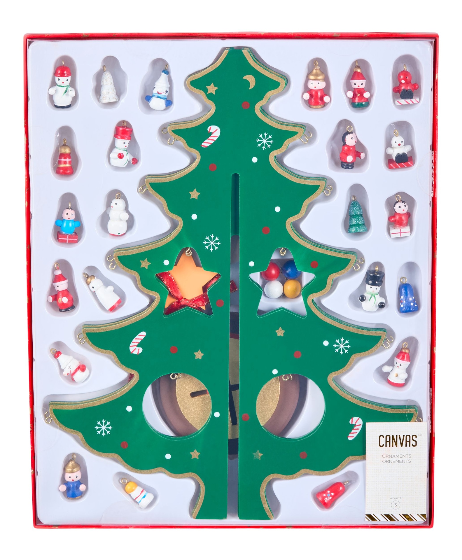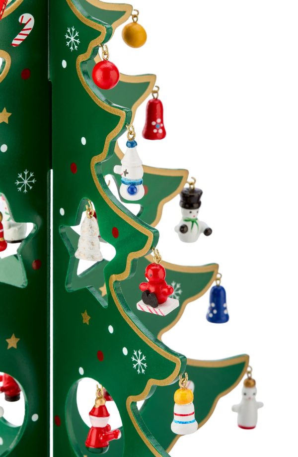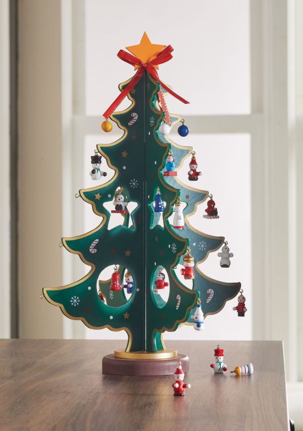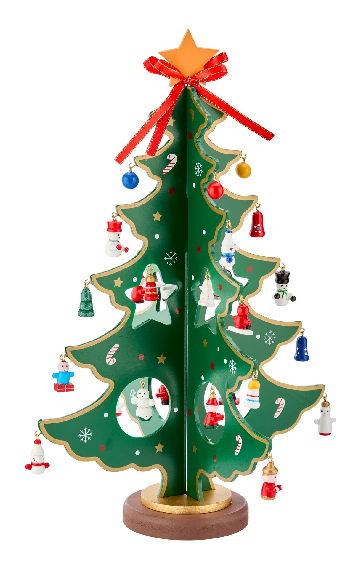 CANVAS Santa’s Workshop Collection Retro Wood Tree with Mini Ornaments Christmas Decoration, 12-in