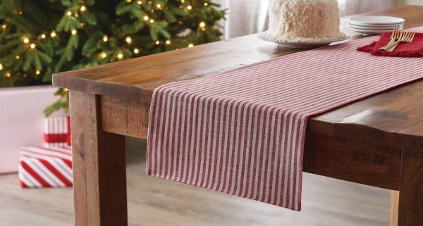 CANVAS Santa’s Workshop Collection Striped Candy Cane Table Runner Christmas Decoration, 72×13-in