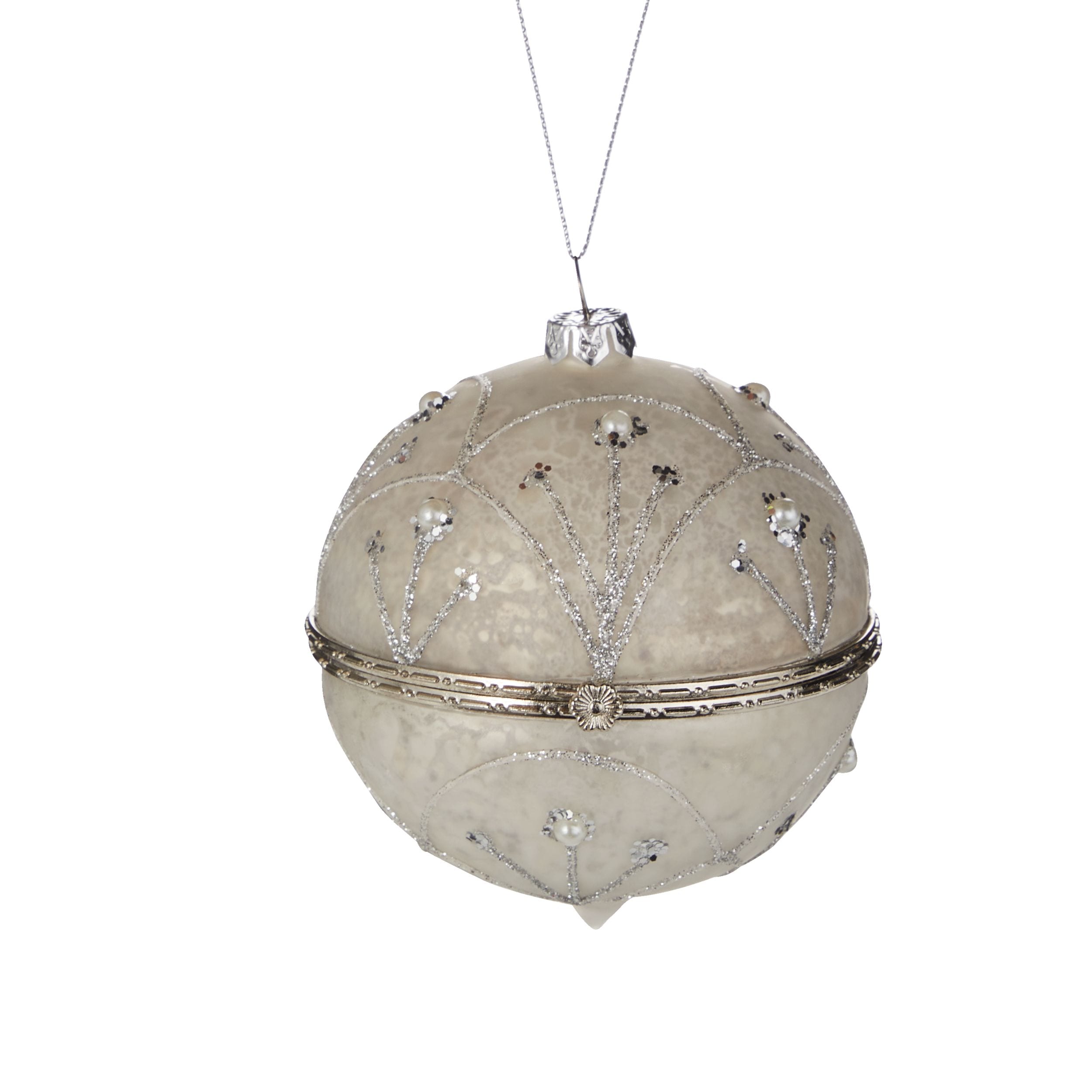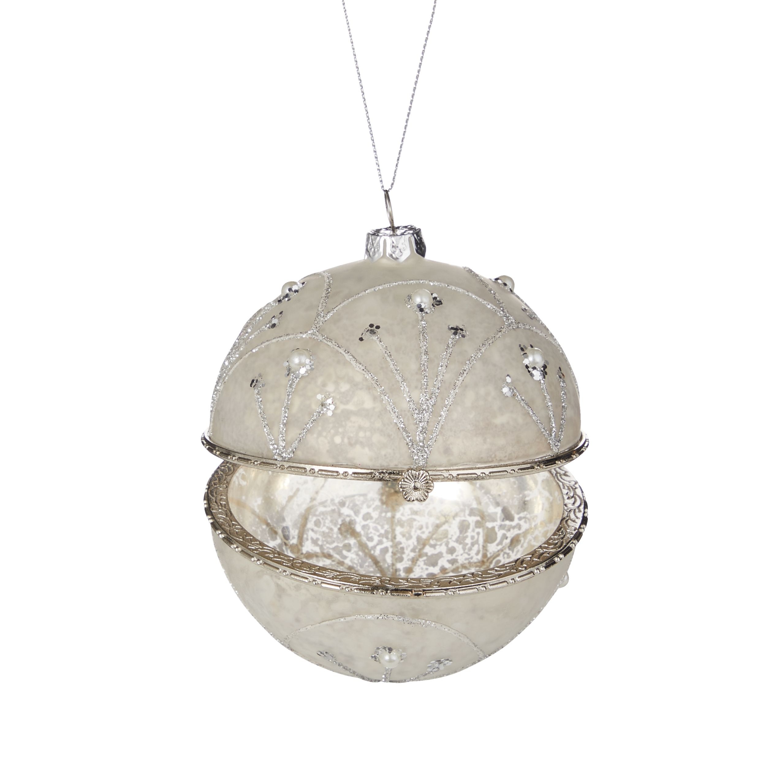 Add some glamour to your tree with the CANVAS Silver Collection Glass Jewelry Box Ornament. This uniquely designed hanging jewelry box decoration is made of high quality glass and opens up to reveal a surprising inner sanctum that’s just big enough to hold a special holiday gift. The ornament comes ready to hang and measures 90 mm (9 cm), with a subtle clasp that keeps the ornament closed from prying eyes.
