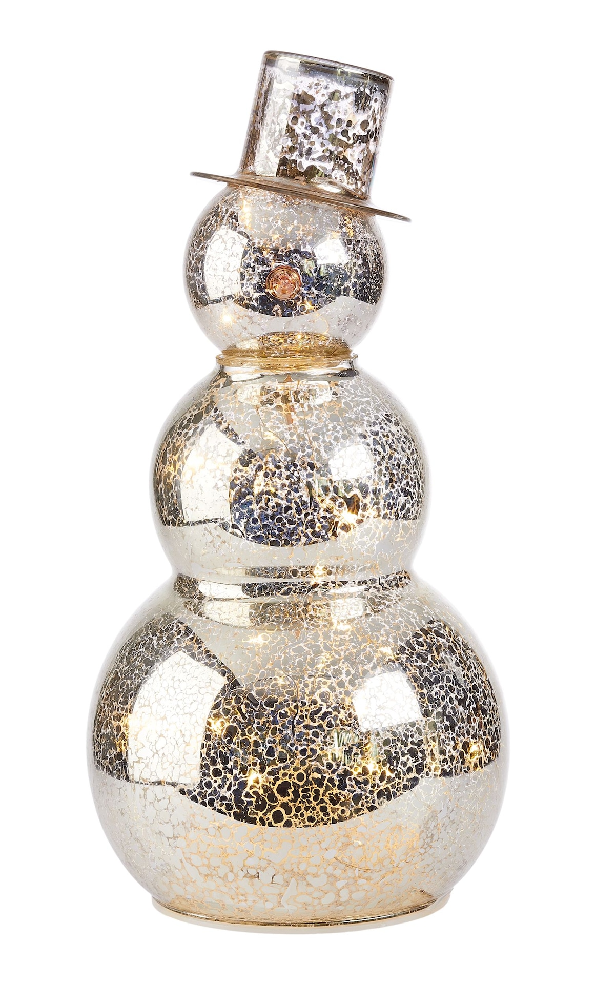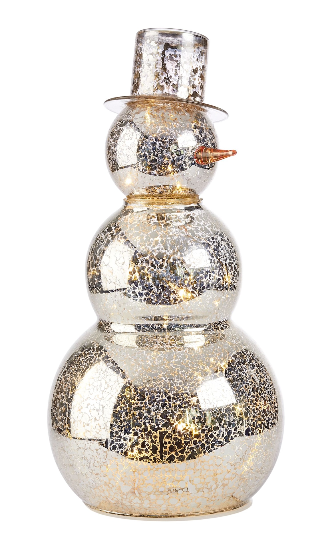 CANVAS Silver Frost Collection Pre-lit Silver Metallic Glass Snowman Christmas Decoration, 10-in