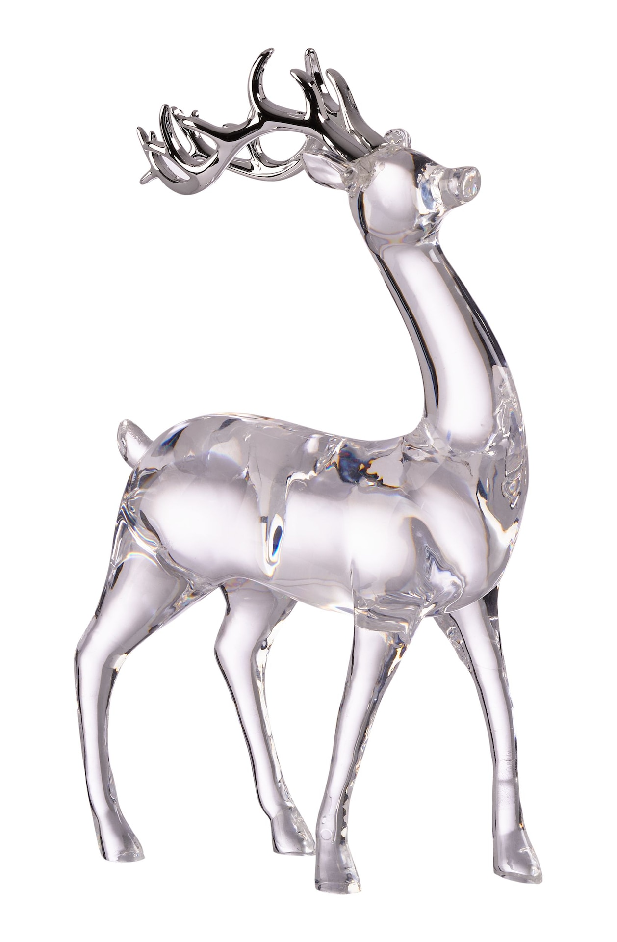 CANVAS White Christmas Collection Clear Standing Deer with Silver Antlers Holiday Tabletop Décor, 11-in
