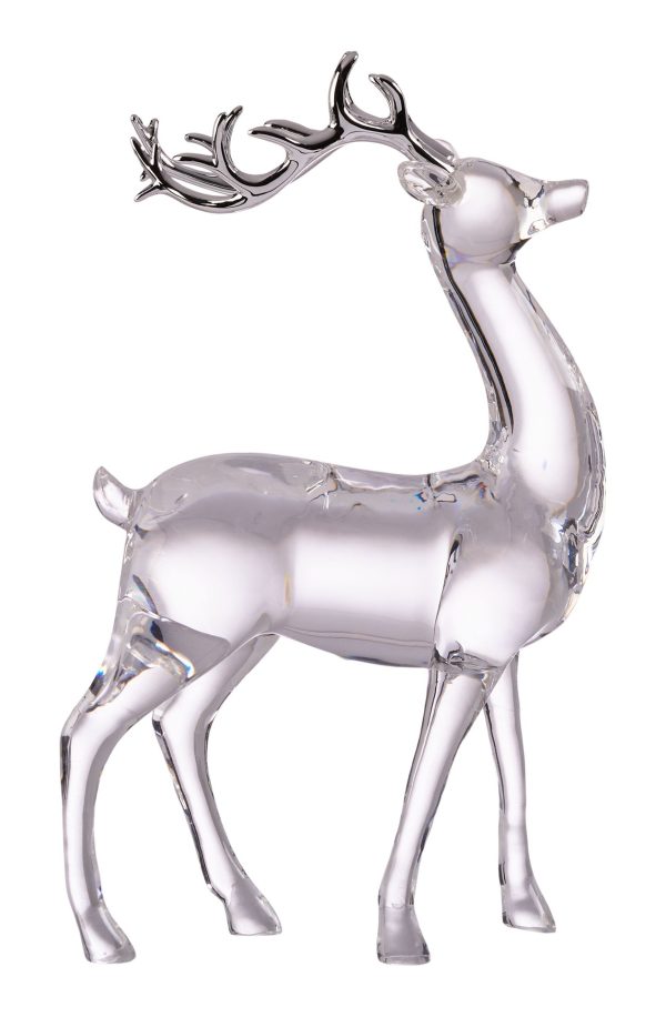Enhance your holiday décor with the elegant CANVAS White Christmas Collection Clear Standing Deer. This stunning piece features silver antlers and a sleek acrylic design, perfect for adding a touch of sophistication to your festive setup. Pair it with the matching Clear Sitting Deer for a cohesive and stylish look.