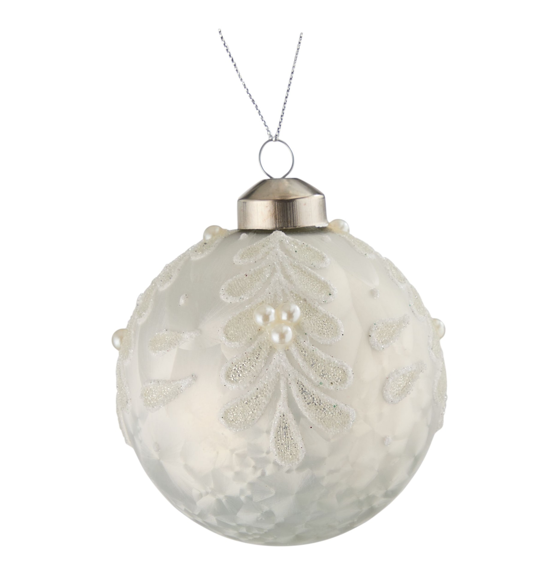 Enhance your holiday decor with the elegant CANVAS Textured Ball Ornament. This exquisite ornament features a beautiful beaded leaf design, adding a touch of sophistication to your Christmas tree. Perfect for creating a festive and stylish atmosphere in your home.