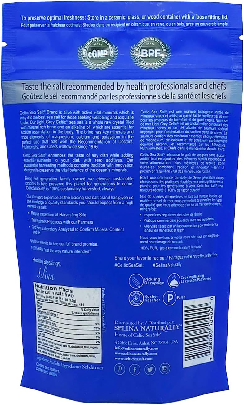 Taste the salt recommended by health professionals and chefs. Celtic Sea Salt® Brand is alive with active vital minerals which is why it is the best sea salt for those seeking wellbeing and exquisite taste. Our Light Grey Celtic® sea salt is a whole raw crystal filled with mineral rich brine and an alkaline pH which are essential for sodium assimilation in the body. The brine has key minerals and trace elements of magnesium, calcium and potassium in the perfect ratio that has won the Recommendation of Doctors, Nutritionists, and Chefs worldwide since 1976. Celtic Sea Salt® enhances the taste of any dish while adding essential nutrients to your diet, with zero additives. Our sustainable harvesting methods combine tradition with innovation designed to preserve the vital balance of ocean’s minerals. Being 3rd generation family owned we choose sustainable practices to help preserve this planet for generations to come. Celtic Sea Salt® is 100% responsibly sourced always!