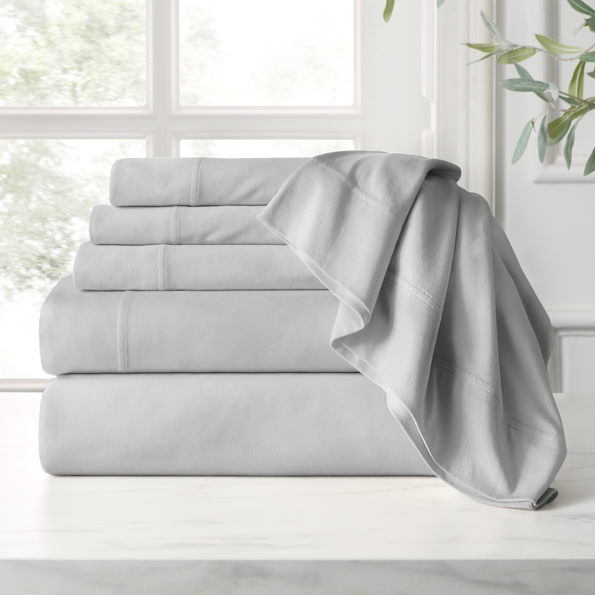 - Queen and king sets include: 1 flat sheet, 1 fitted sheet, 4 pillowcases