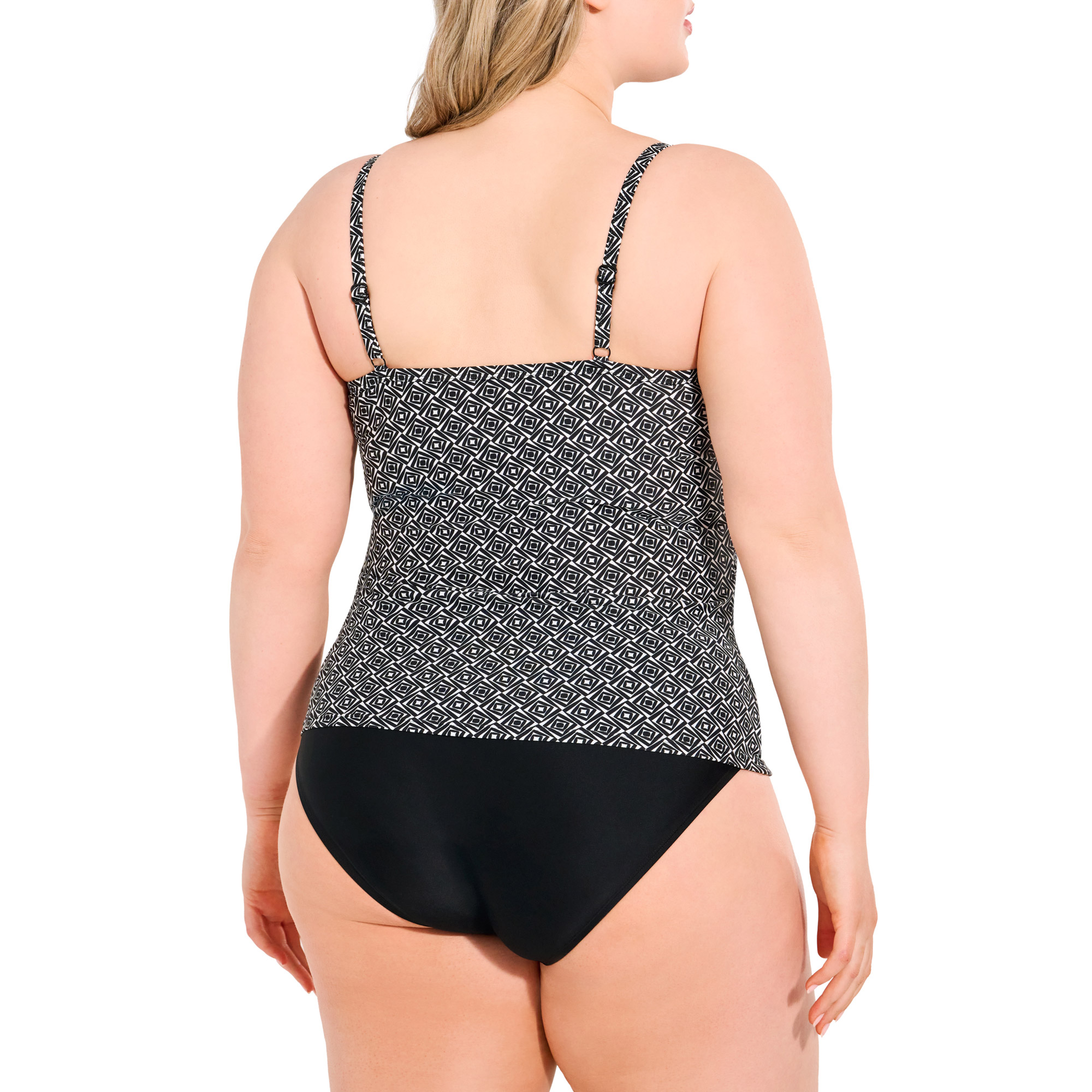 - Sewn-in soft cups with elastic bra contour