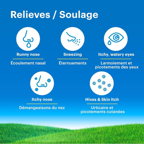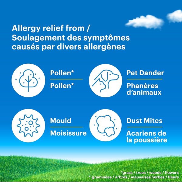 - Provides fast relief of allergy symptoms caused by outdoor allergens such as trees, grass, ragweed and pollen and indoor allergens such as dust mites, animal dander and moulds