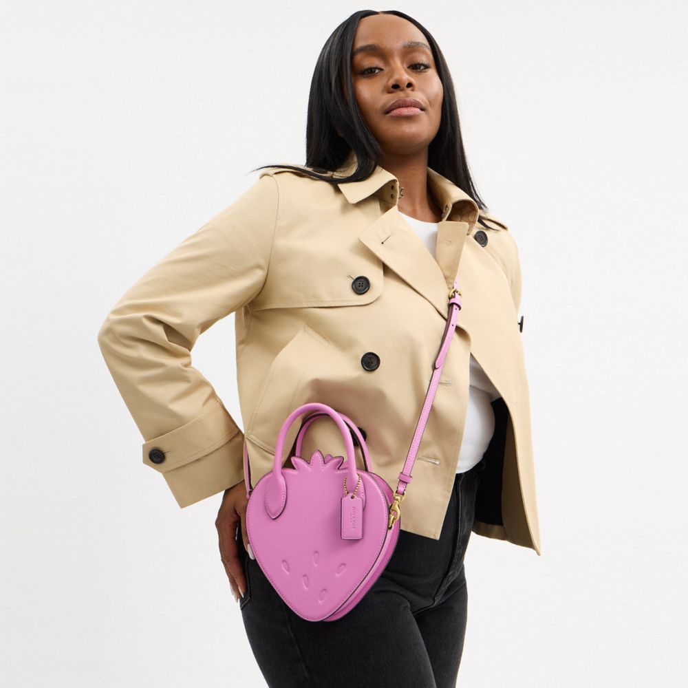 A refreshing style to take on the day (and night), our Strawberry bag is crafted of regenerative glovetanned leather. Crafted to last, the leather is sourced from farms that use regenerative agricultural practices – those that help maintain and rejuvenate grasslands, increase biological diversity, soil health and productivity, and could lead to increased carbon absorption. It reflects our ongoing commitment to helping reduce our impact on the planet. Designed to fit all your essentials, it can be carried by the top handles or worn crossbody. (It’s ripe for the picking.)