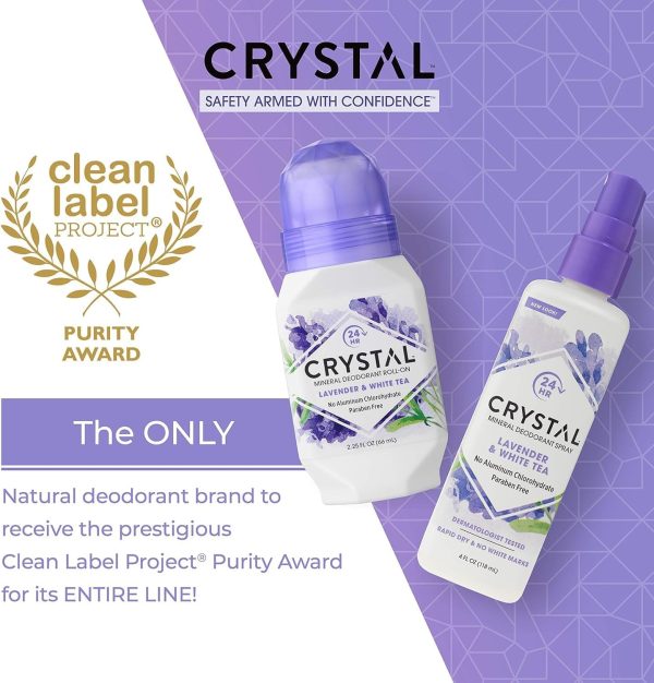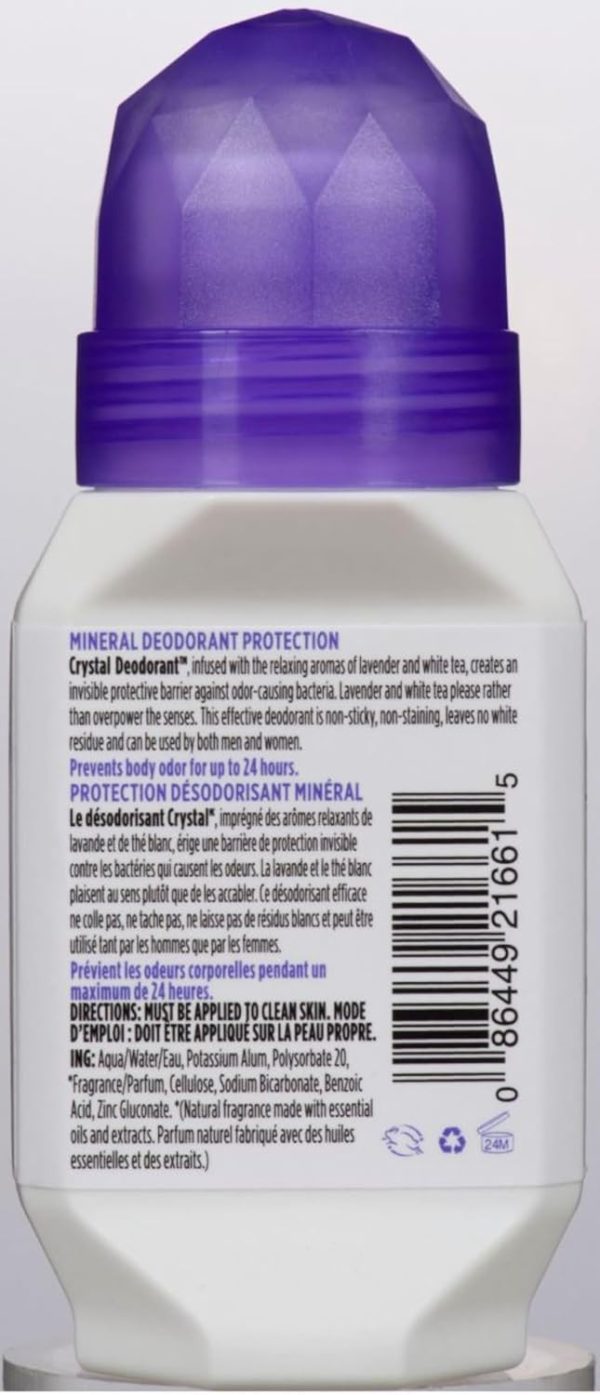 Crystal Essence Roll On Deodorant, Lavender & White Tea, 24 hour odour protection, non-staining, Made without Aluminum Chloride/Chlorohydrate/Zirconium, Parabens, Phthalates, and Artificial Fragrance, dermatologist tested, Vegan and Cruelty Free – 66ml (Pack on 1)