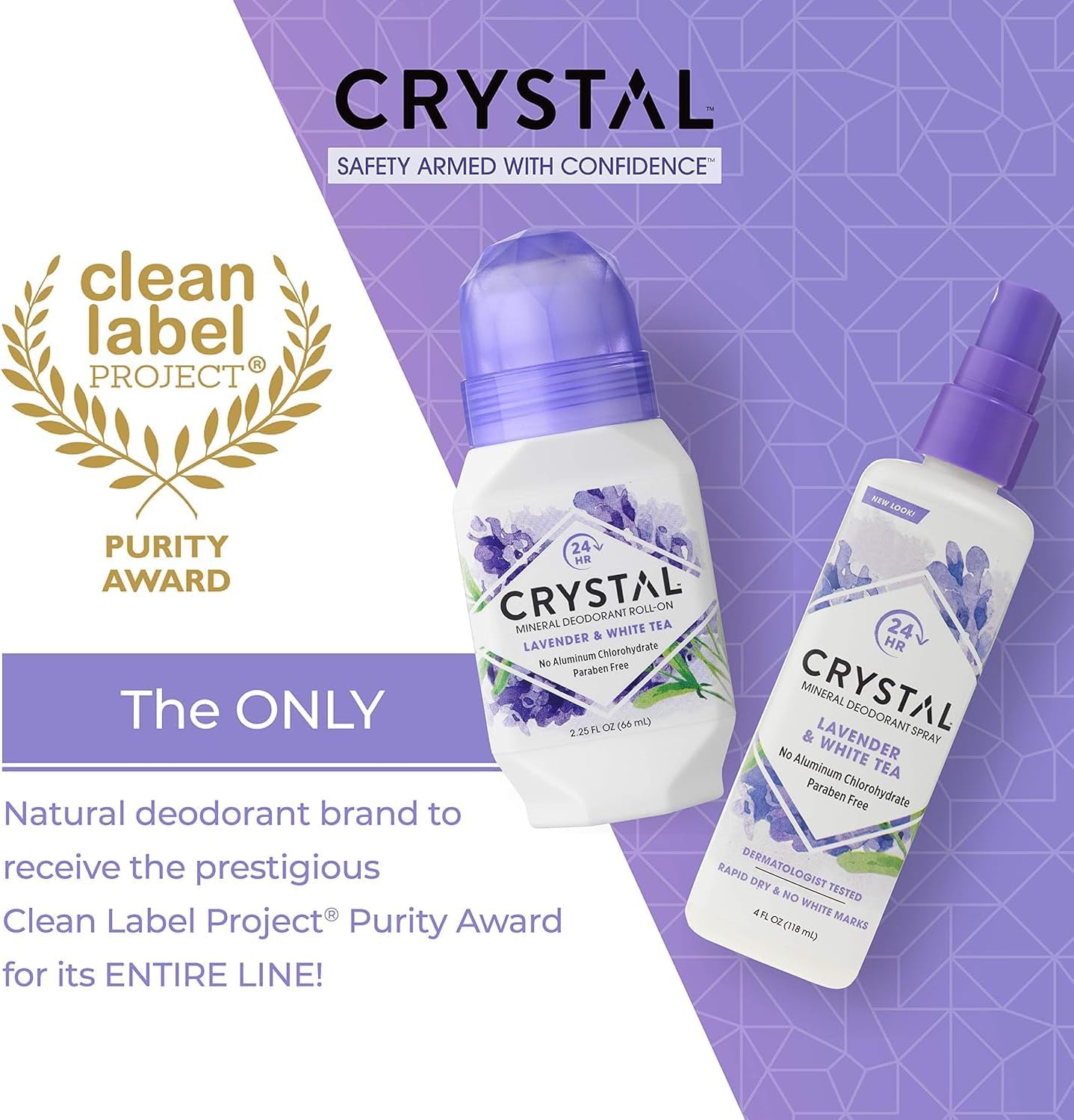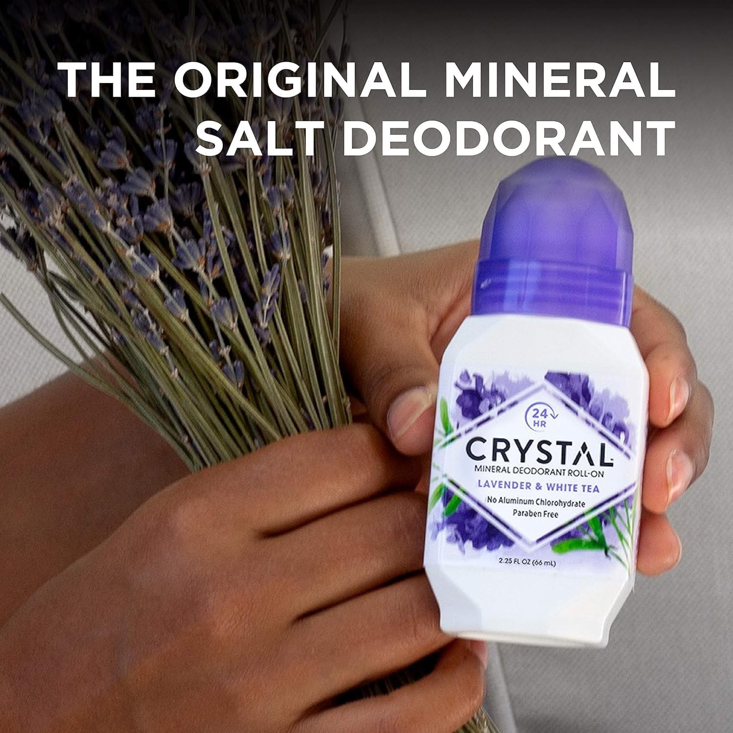 Crystal Essence Roll On Deodorant, Lavender & White Tea, 24 hour odour protection, non-staining, Made without Aluminum Chloride/Chlorohydrate/Zirconium, Parabens, Phthalates, and Artificial Fragrance, dermatologist tested, Vegan and Cruelty Free – 66ml (Pack on 1)