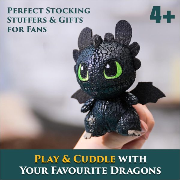 - Mini Plush Toys: These 3” Toothless and Deadly Nadder dragon plushies feature soft plush fabrics, shiny scales, embroidered facial features, and movie-accurate details fans will love