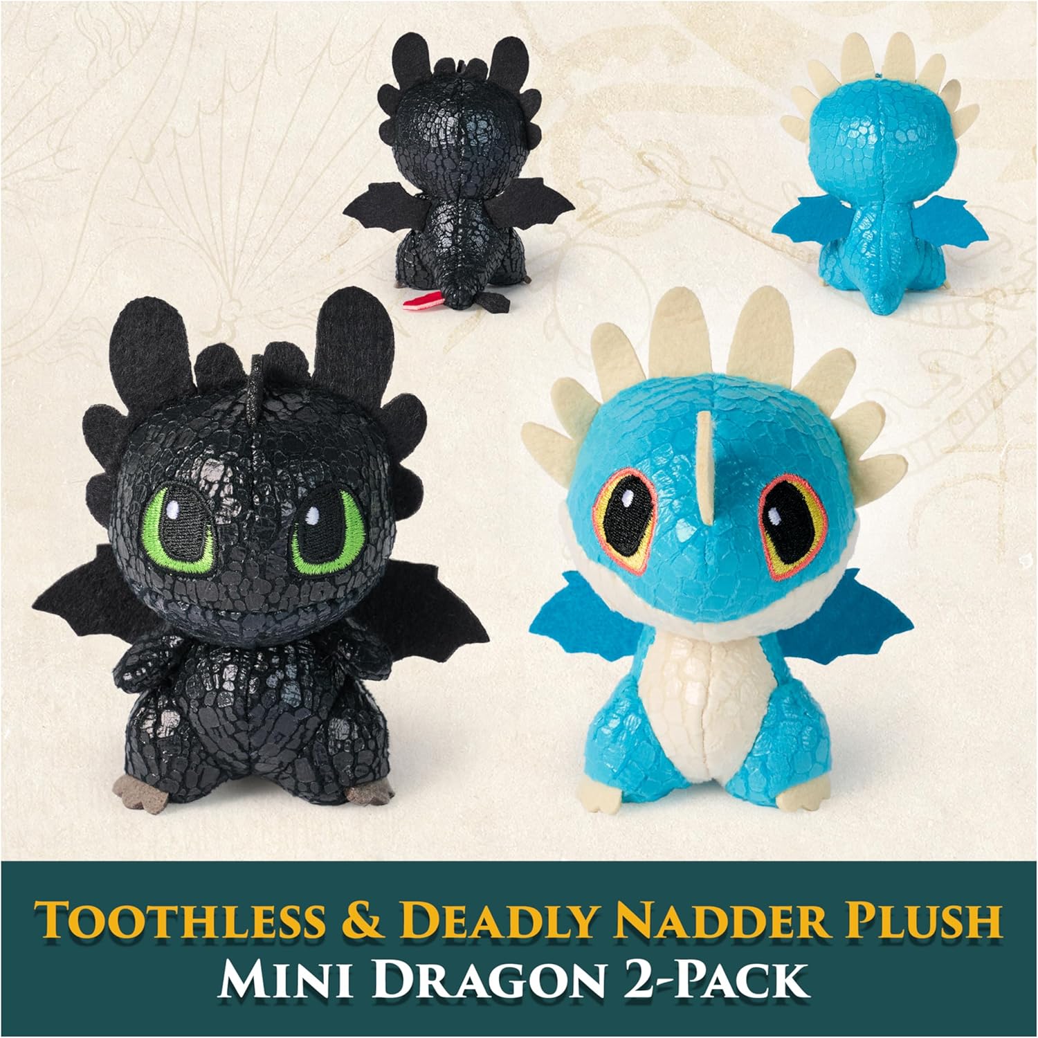 - 2-Pack: Bring the thrilling adventures of Berk to life with Toothless and Deadly Nadder plushies Explore our for even more mini mystery plushies and complete your plush dragon collection