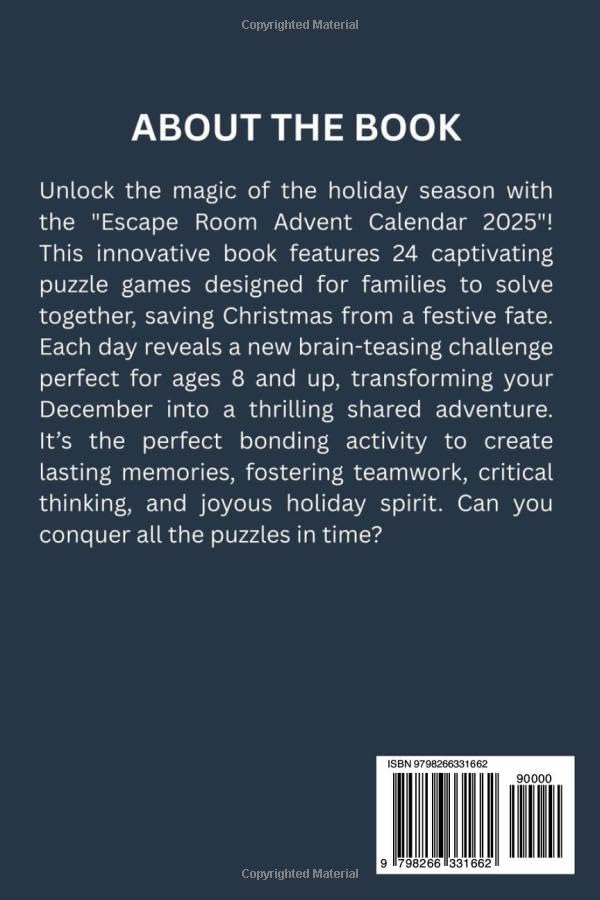 Escape Room Advent Calendar 2025: Save Christmas by Conquering 24 Brain-Teasing Games. A Captivating bonding Activity for Families with Children Aged 8 and Up.