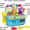 - Interactive pretend workbench and construction toy tools with 70+ songs, sounds and learning phrases