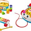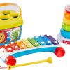 - Classic Xylophone has wheels for pull-along fun, tapping keys develops fine motor skills; Chatter Telephone features moving eyes, introduces numbers 0-9, and encourages pretend play.