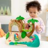 Hands-on activities: press the 2 shell buttons for fun peekaboo and pop-up surprises, bat the tree spinners, swing a figure between the trees, spin to “dance” with a sea turtle