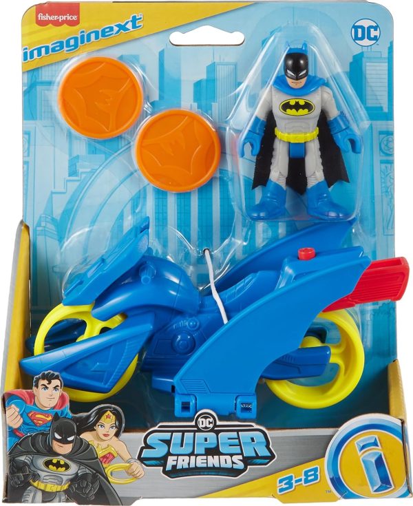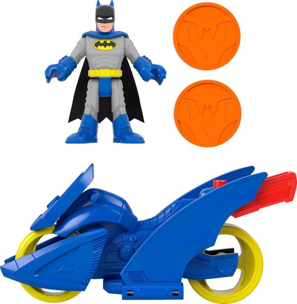 - Playset includes Batman figure, Batcycle, and 2 projectile discs