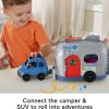 - Kids can connect the RV to the car and roll both along to “drive” from one camp site to the next
