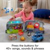 - 2-in-1 push-along vehicle and interactive camping playset with multi-color lights, music, songs and phrases for educational pretend play