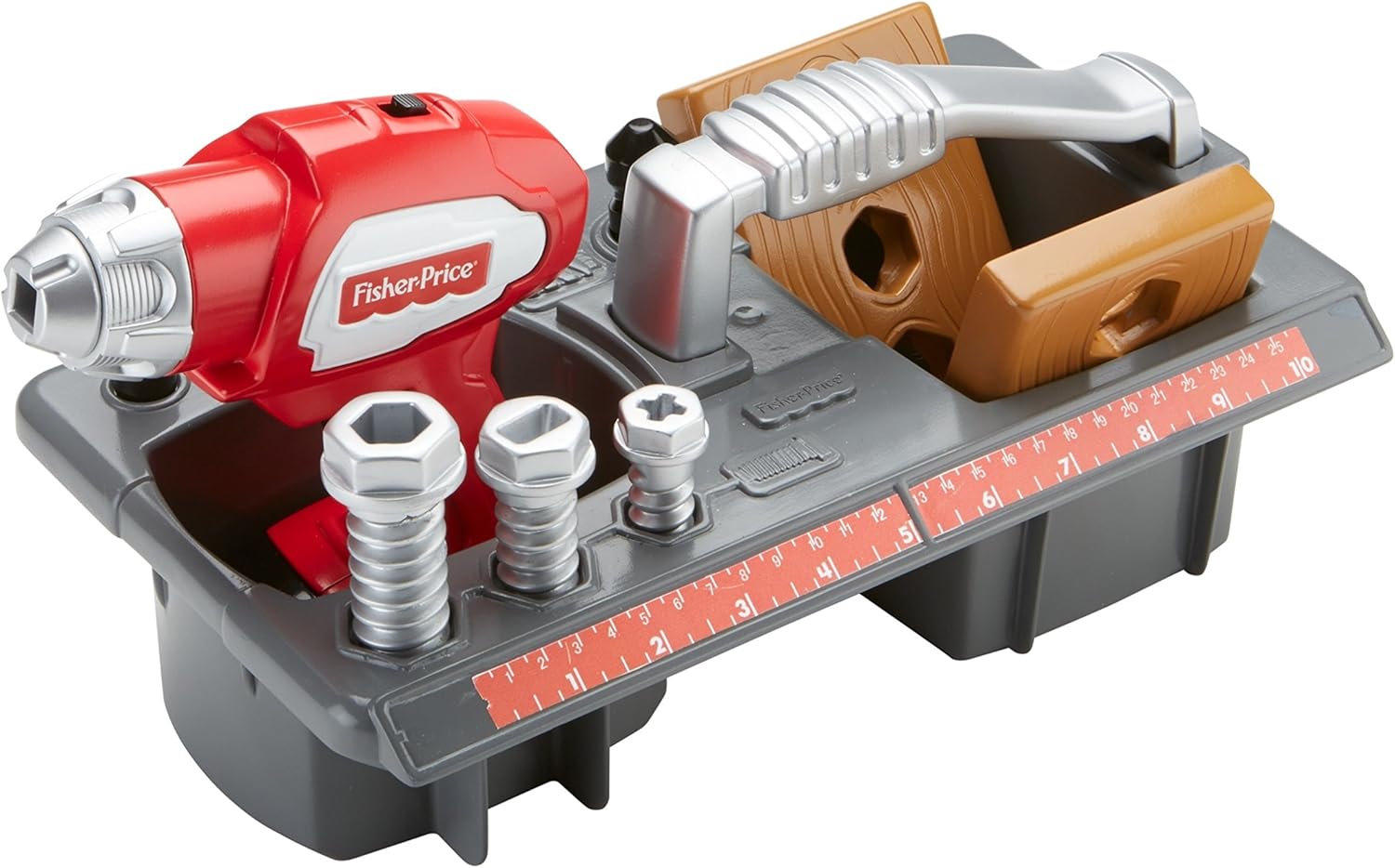 Fisher-Price Preschool Toy Drillin’ Action Tool Set with Sounds, 10 Pieces for Construction Pretend Play for Kids Ages 3+ Years